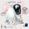 Wedding, 3 complete designs + clipart and 2 backgrounds to make your own. 20 PNGs. Bride, groom, LGBT, sublimation, print, DTF etc.