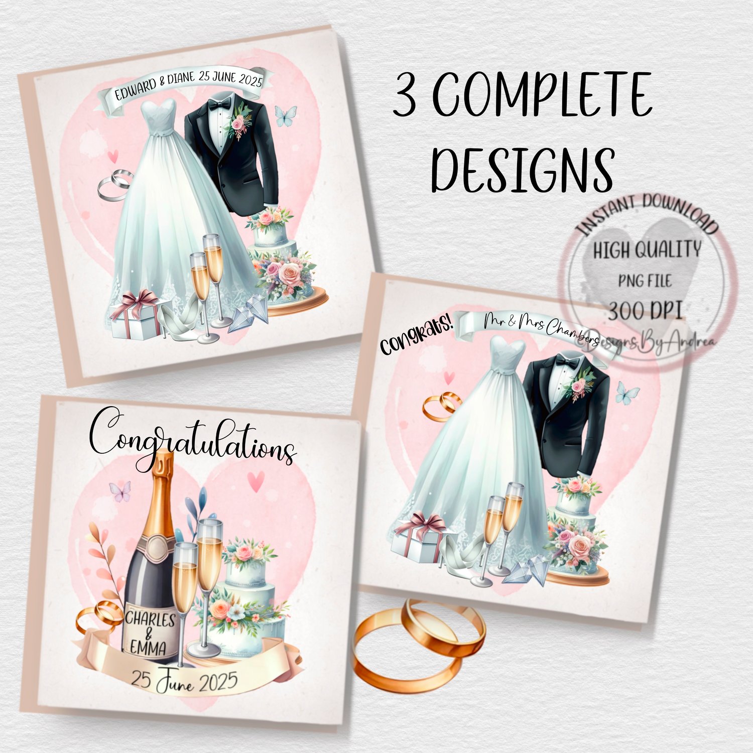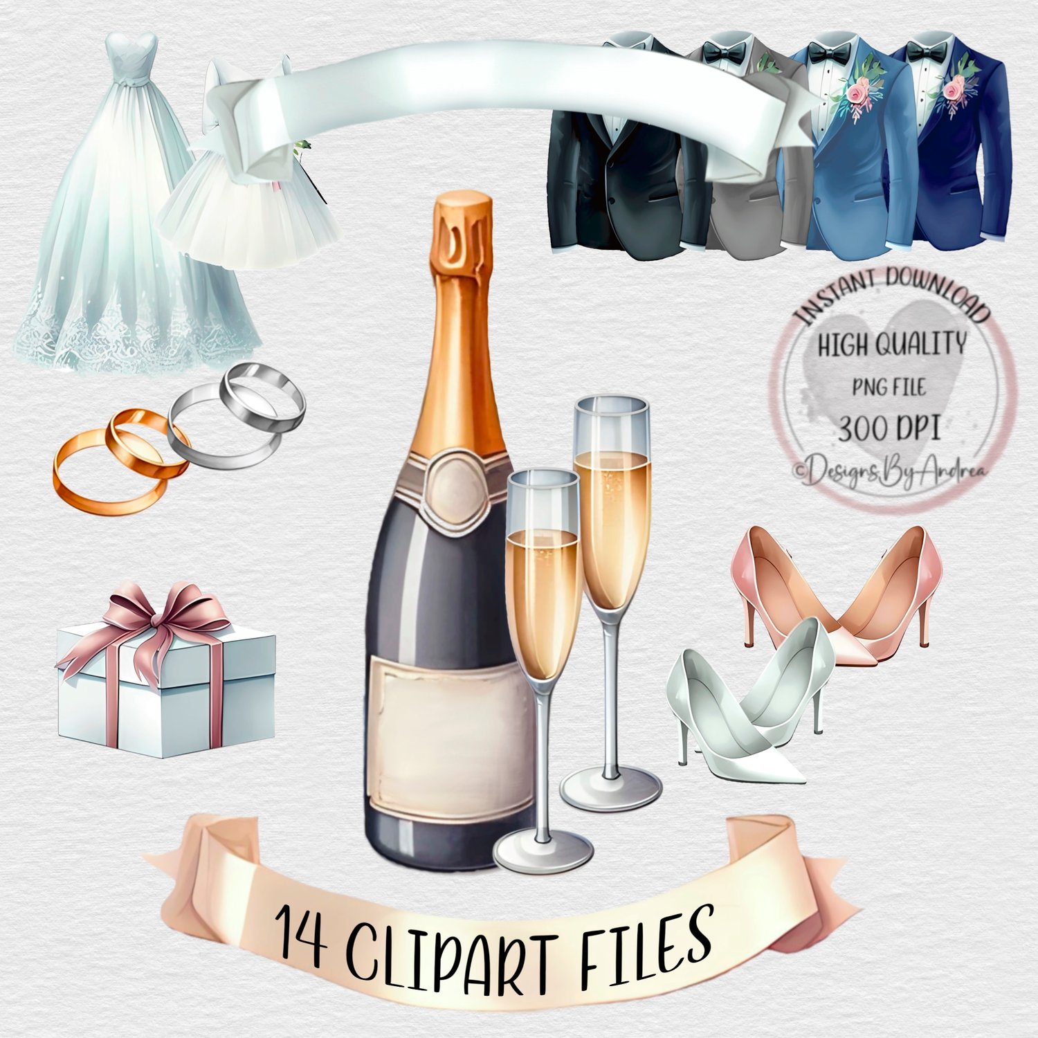 Wedding, 3 complete designs + clipart and 2 backgrounds to make your own. 20 PNGs. Bride, groom, LGBT, sublimation, print, DTF etc. Instant Download.