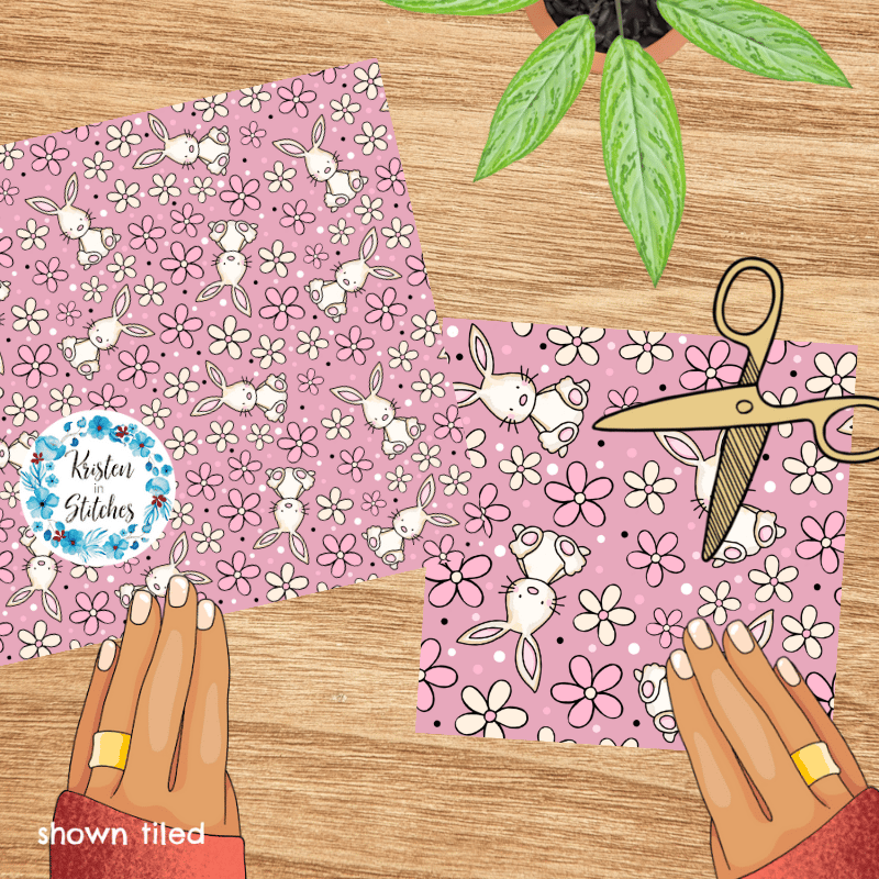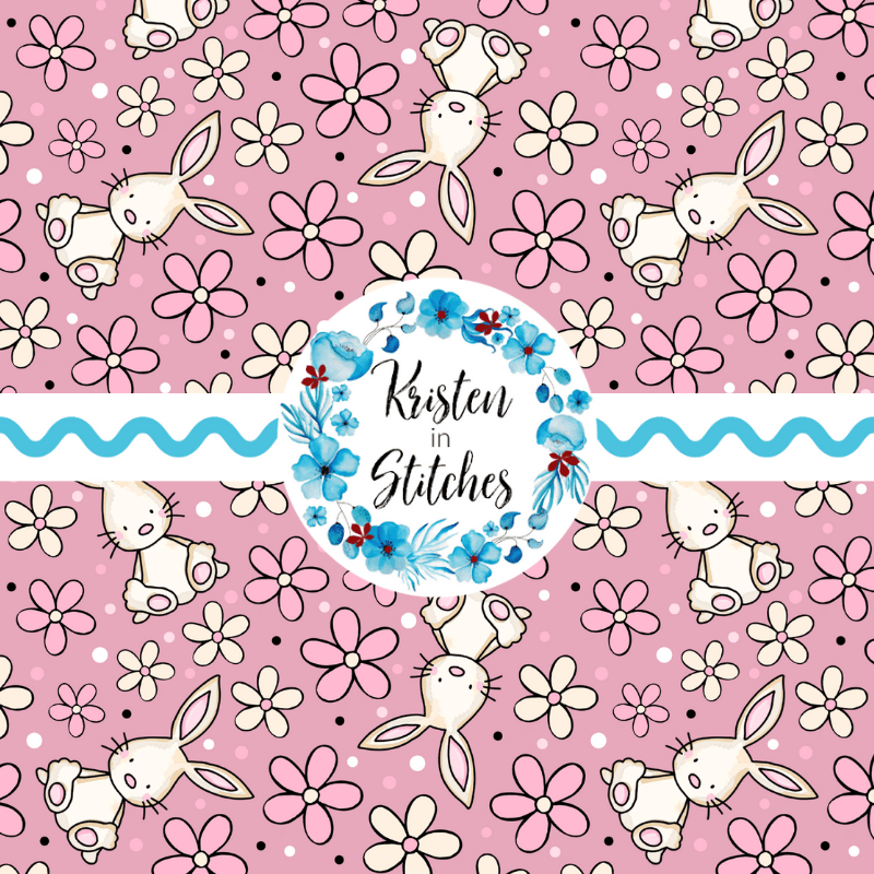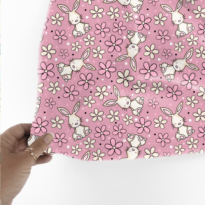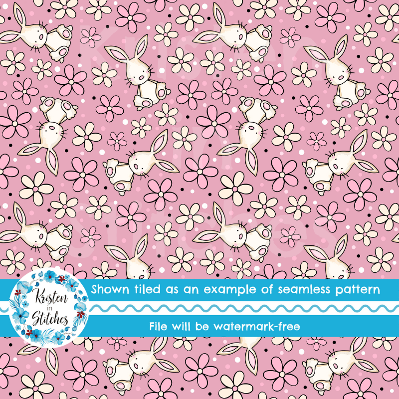 Baby Bunnies Spring Floral Seamless Pattern, Dusty Pink