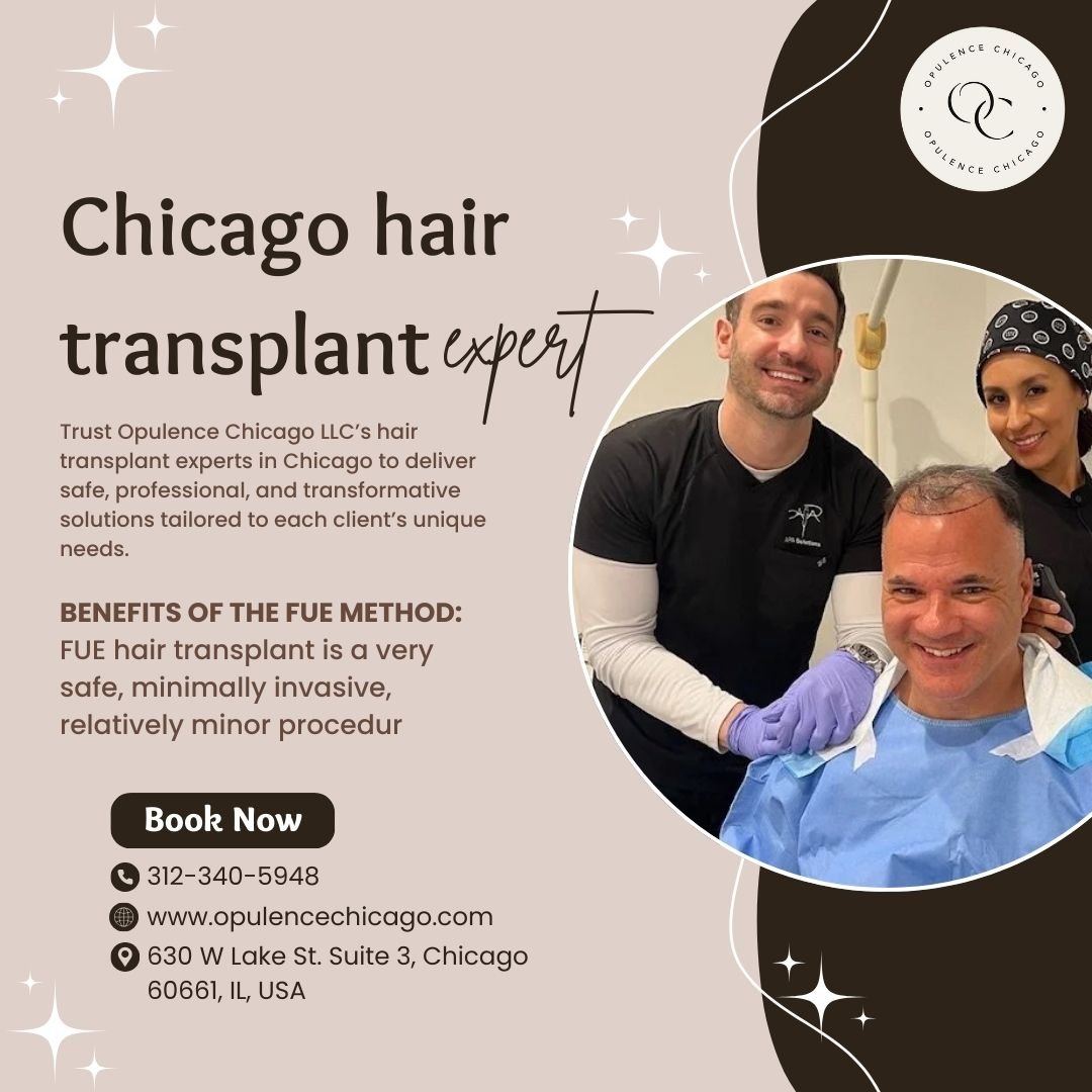 Opulence Chicago LLC is recognized as the best FUE clinic in Chicago, offering expert hair transplant services. Our experienced surgeons provide personalized, minimally invasive procedures to restore hair naturally and effectively. Using advanced techniques and state-of-the-art technology, we ensure optimal results for hair density, growth, and appearance. Trust Opulence Chicago LLC’s hair transplant experts in Chicago to deliver safe, professional, and transformative solutions tailored to each client’s unique needs.