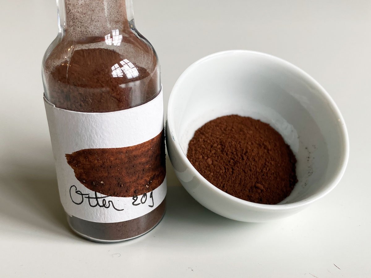 Safety data: Ochres are not toxic at all, but all non-organic dust can be harmful to the lungs if inhaled, so handle with caution while your pigment powder is dry.