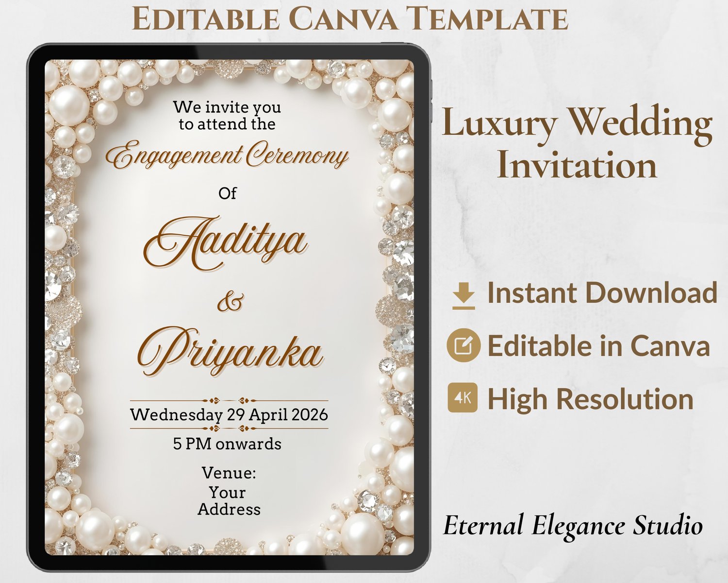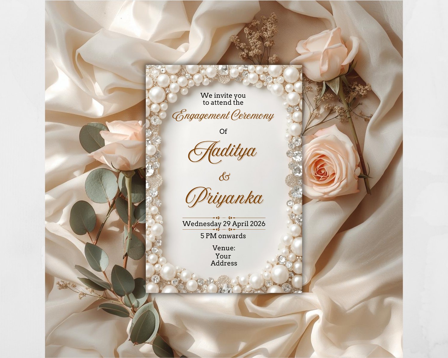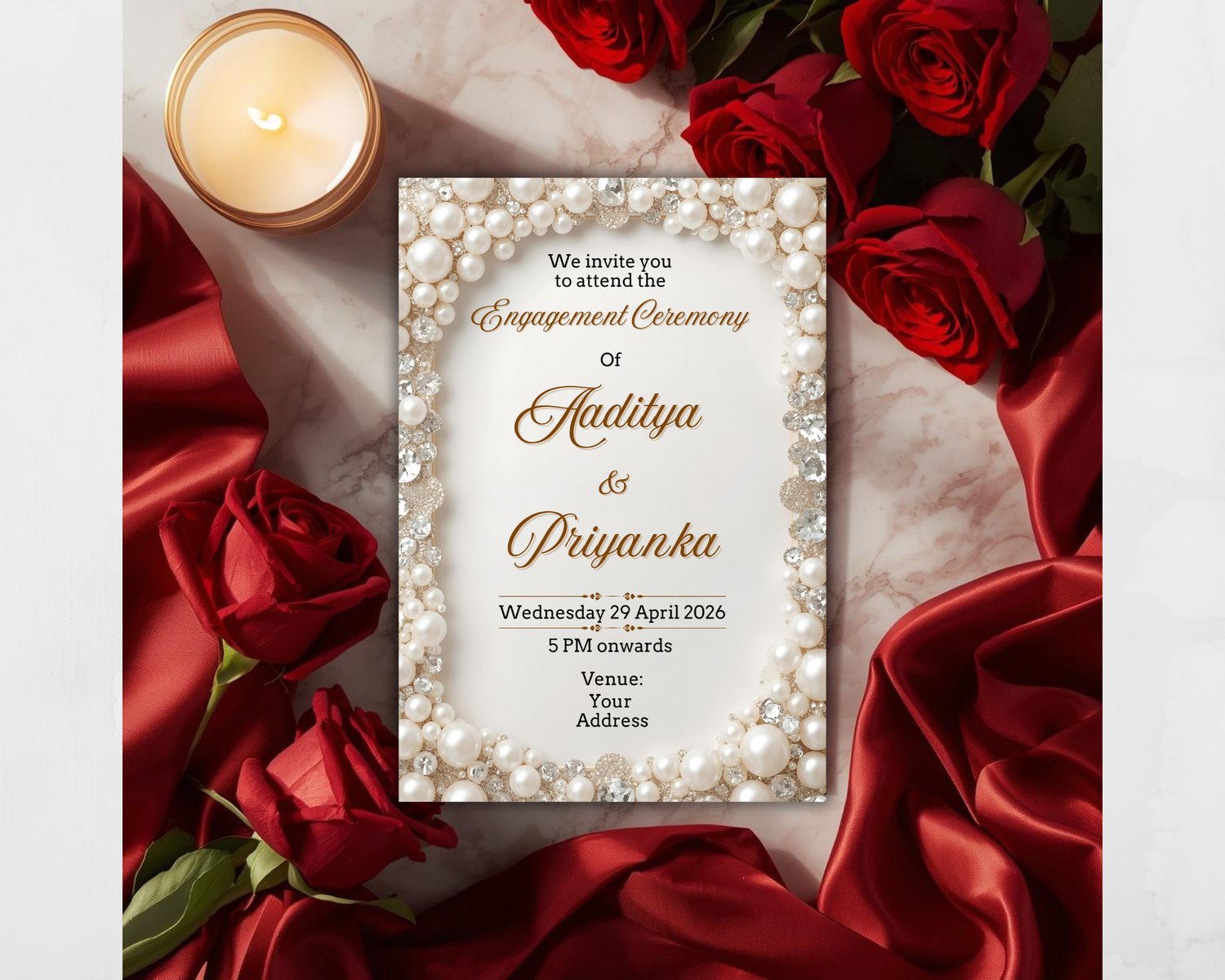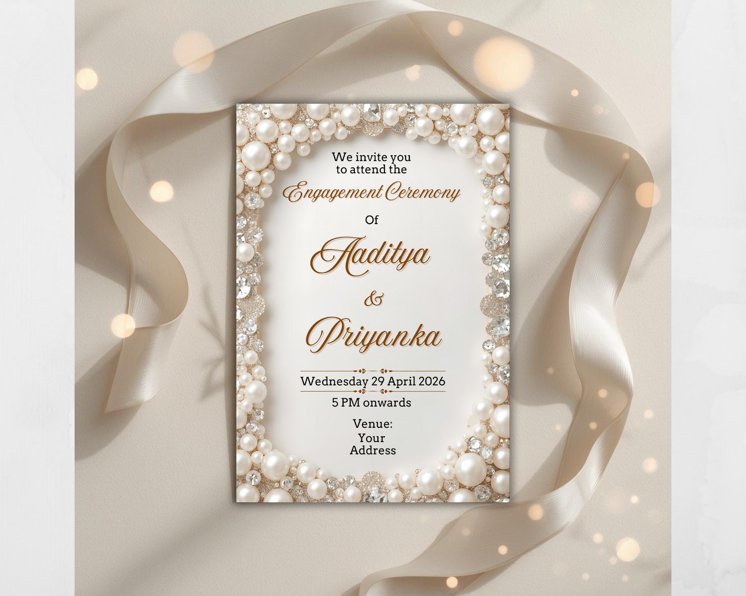 ✨ Make your engagement announcement look truly elegant with this luxury pearl-themed engagement invitation template.