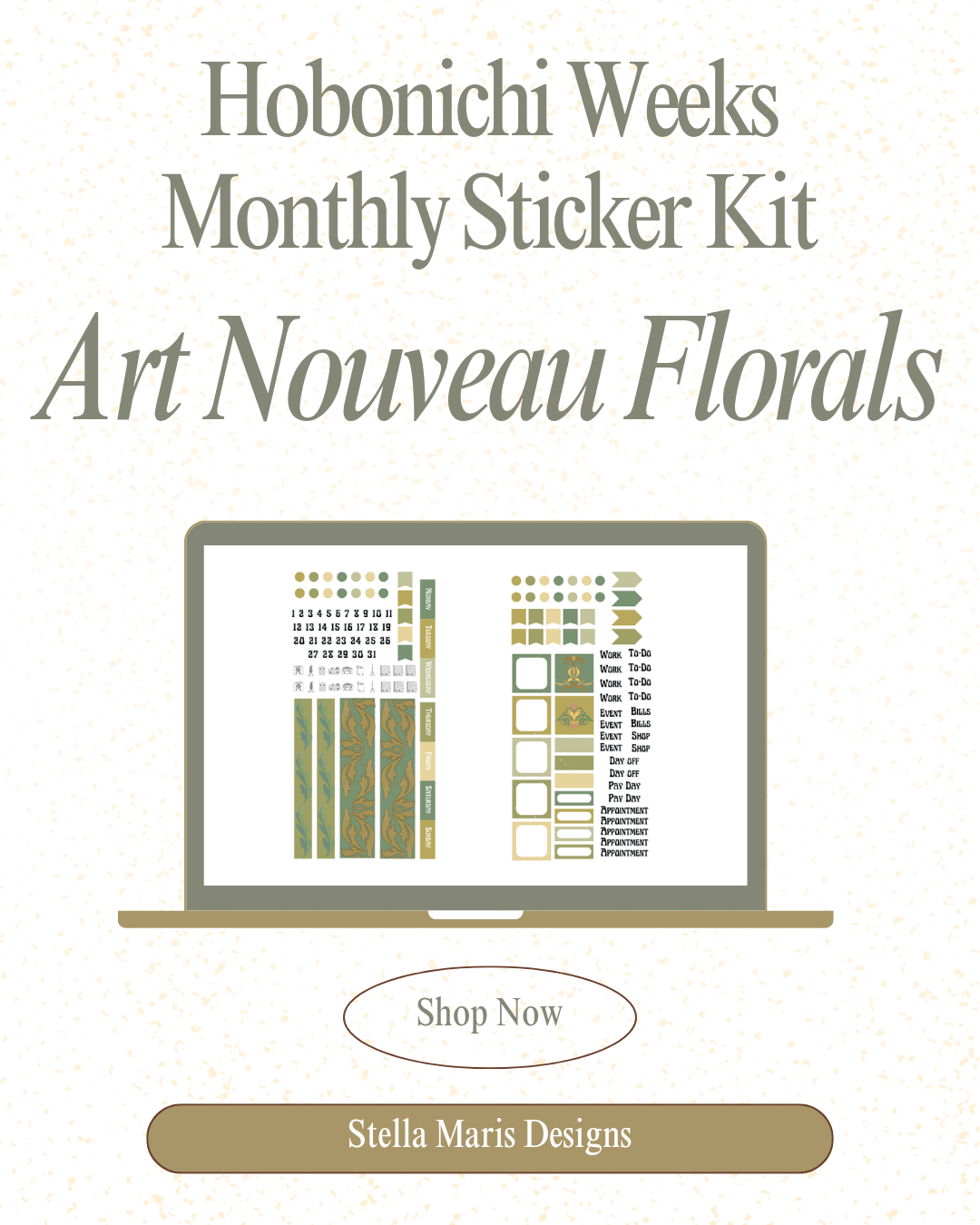 Art Nouveau Florals – Printable Monthly Planner Sticker Kit – Seasonal – Hobonichi Weeks