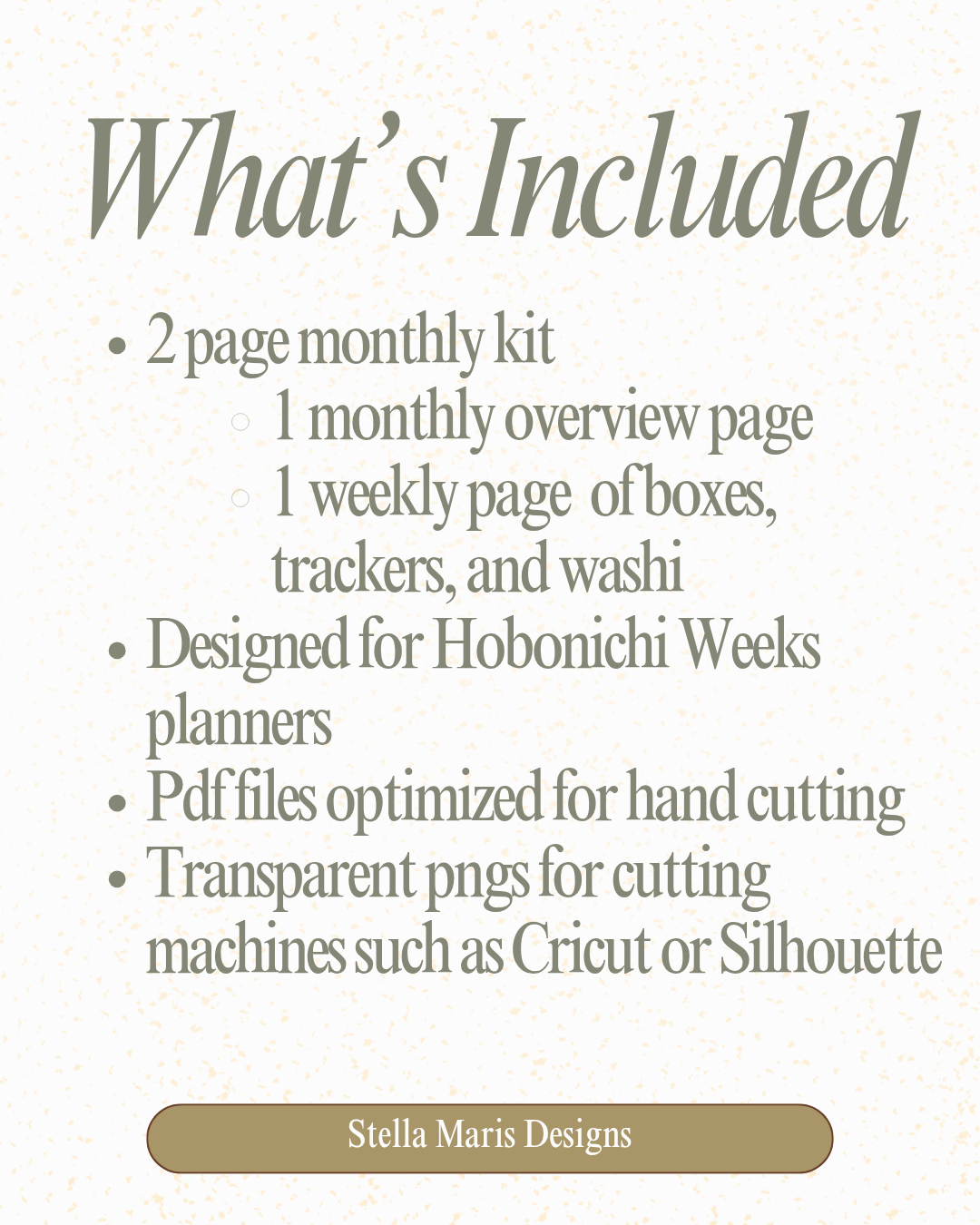 A slim, elegant Art Nouveau floral kit tailored for the Hobonichi Weeks monthly layout. Flowing botanical motifs and soft seasonal colors bring a touch of vintage charm to the narrow format.