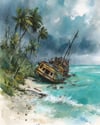 Tropical Shipwrecks - 10 Watercolor Beach Art Collection