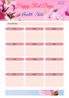 Weekly Planner for daily listing of Foods, Beauty time, Hygiene Schedule etc. for anyone, And Yearly period Planner especially for women whose period are irregular and not have time or any awareness. It will help women remind about regular period schedules.