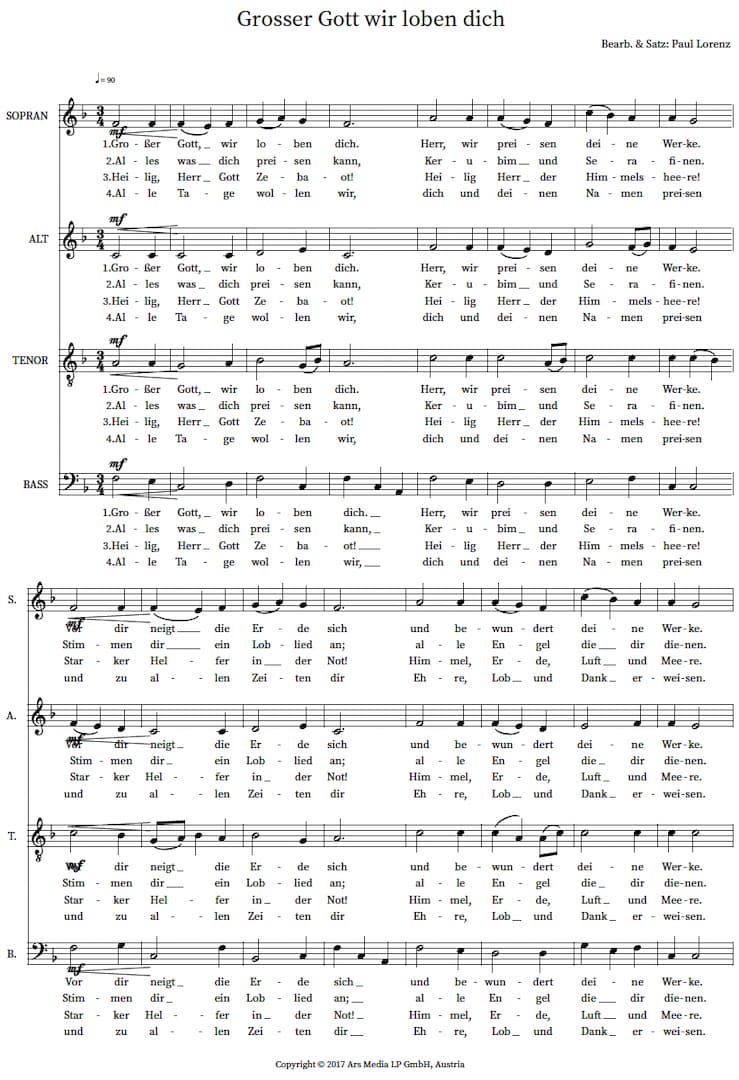 Großer Gott wir loben dich – Noten für Chor (SATB) PDF Download