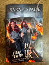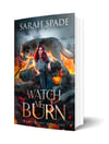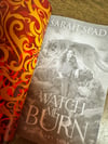 A signed copy of the Watch Me Burn paperback by Sarah Spade. It has a special duplex cover only available through me, and comes with a matching bookmark, character art print, and a silver-plated pentacle necklace.