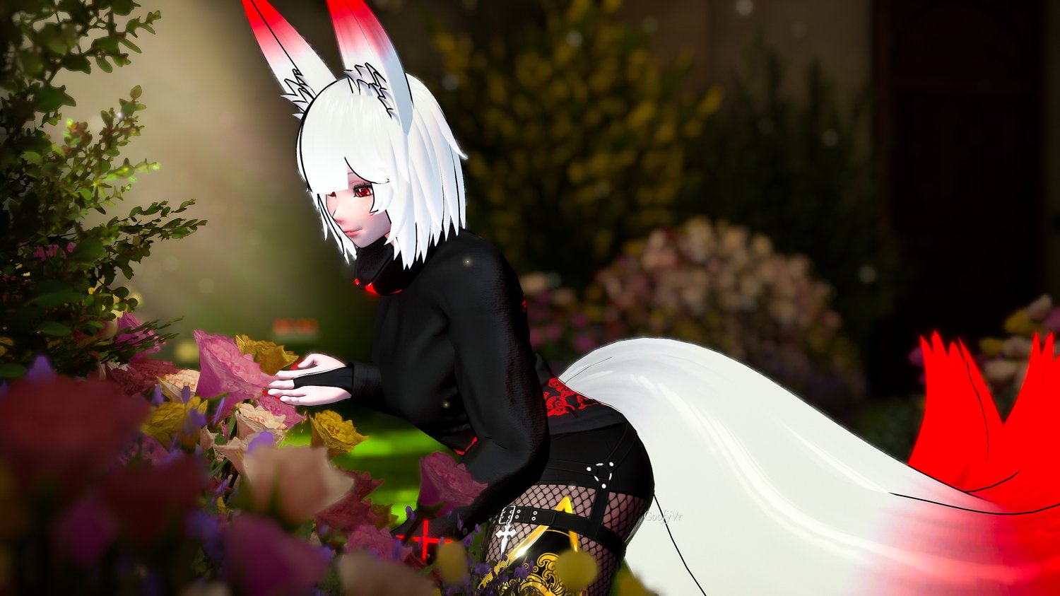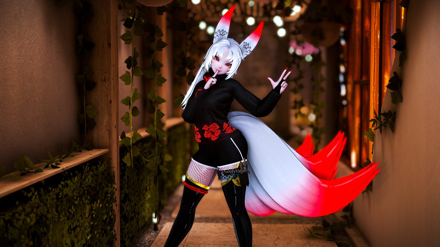 Aurora Head (heavily edited): Sleepy, VRBase Fantasy (heavily edited): Zinpia, Face Tracking DLC: paper_rue, Paws (Feet): Zinpia, Dangerous Sinners Outfit: Ana_Ram, Winged Hightops Shoes: Plaz, Kimono: smolgrey, Moist Wet Skin: VeronicaJae, Vessa Legwear: JinxieWinks, Boots: Littlelulu, Paw Pasties: Xero 3D, Tech Pants: kayceecore, Fox Pet: MSage, Wholesome Lollipop: Wholesome, Knot: Skuny, Gogo Loco: Franada, GoGo Freeze: Franda, VRCFT - Jerry's Templates: Adjerry91, Sps Configurator: Wholesome