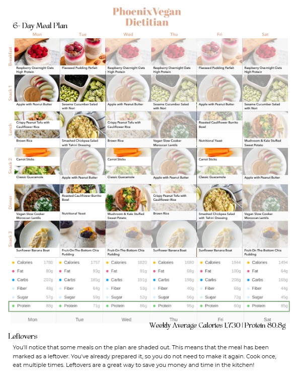 Vegan Higher Protein (80g) 6 Day Meal Plan