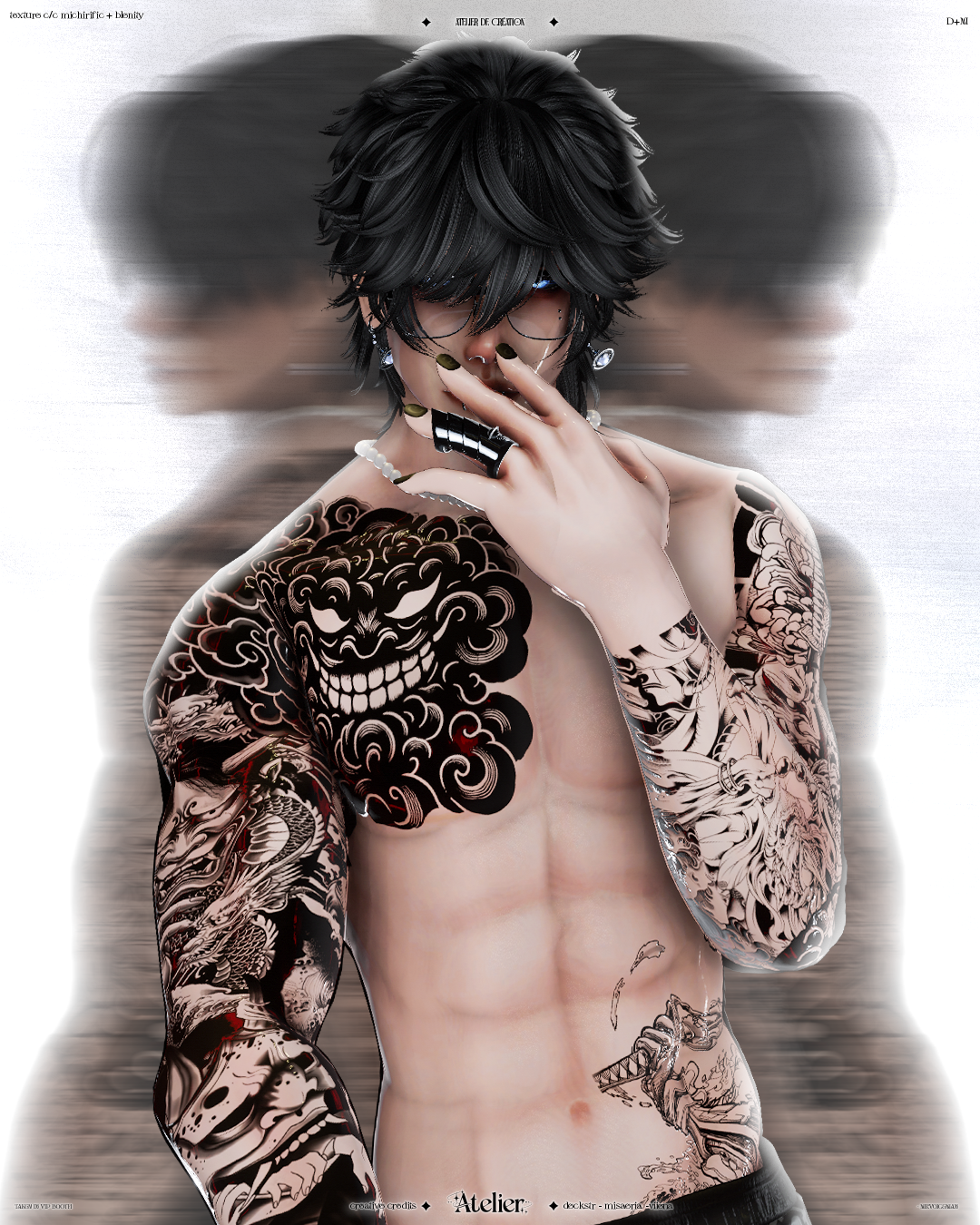 -----NOTE: Please... Do yourself a favor... Turn the image for the body with tattoo to 4096, and it'll look great 😌 I put a lot of work into these textures and realize that they look off with 2048 (Although they look fine in 2048), don't get me wrong, they work, but don't be like wow, this looks horrid 💀