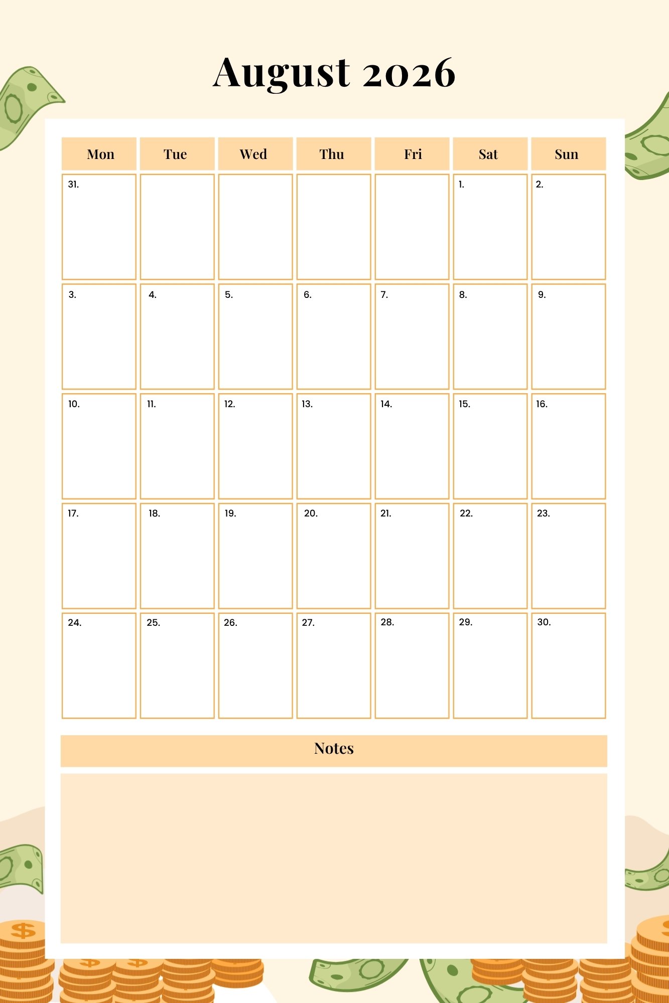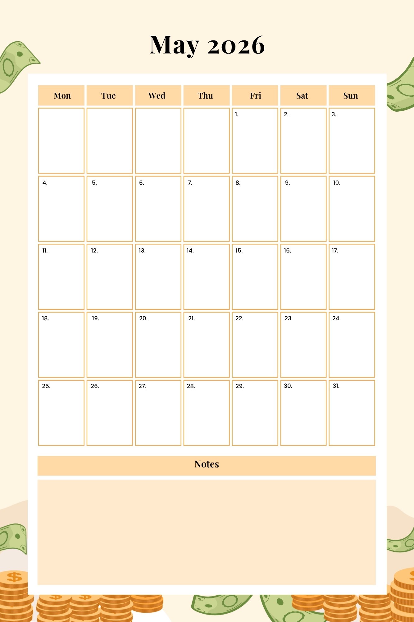 - 2026 Calendar: Full monthly calendar pages for the entire year 2026 to track your finances and challenges. (p. 3, 0.1.6-0.1.17)