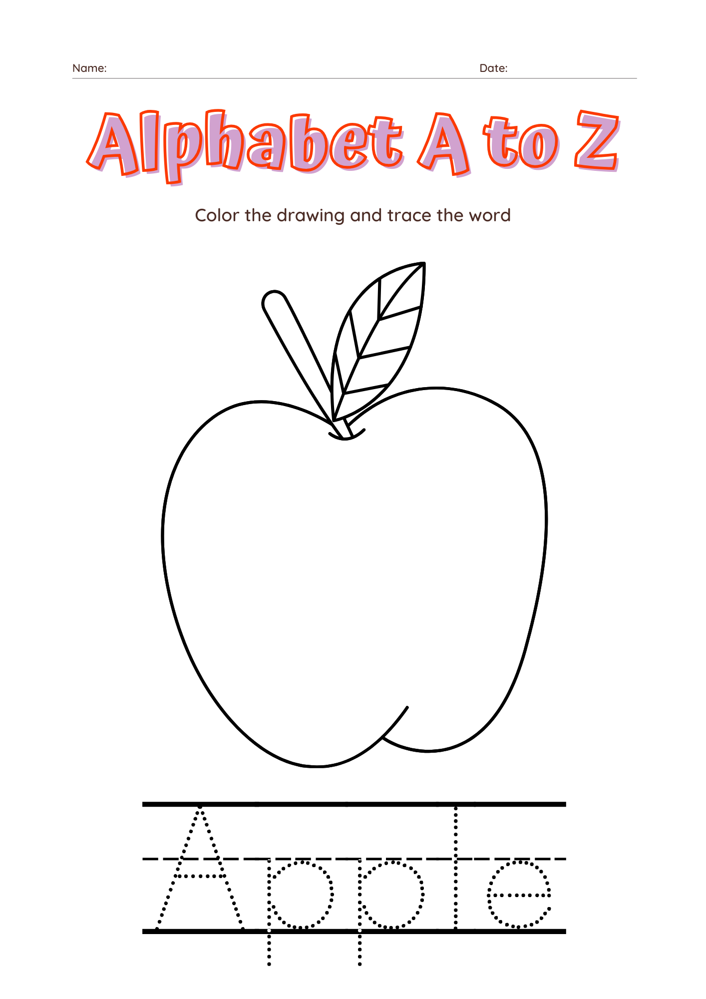 This digital download includes 26 high-quality coloring pages, each featuring a letter from A to Z with an associated object to color.