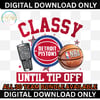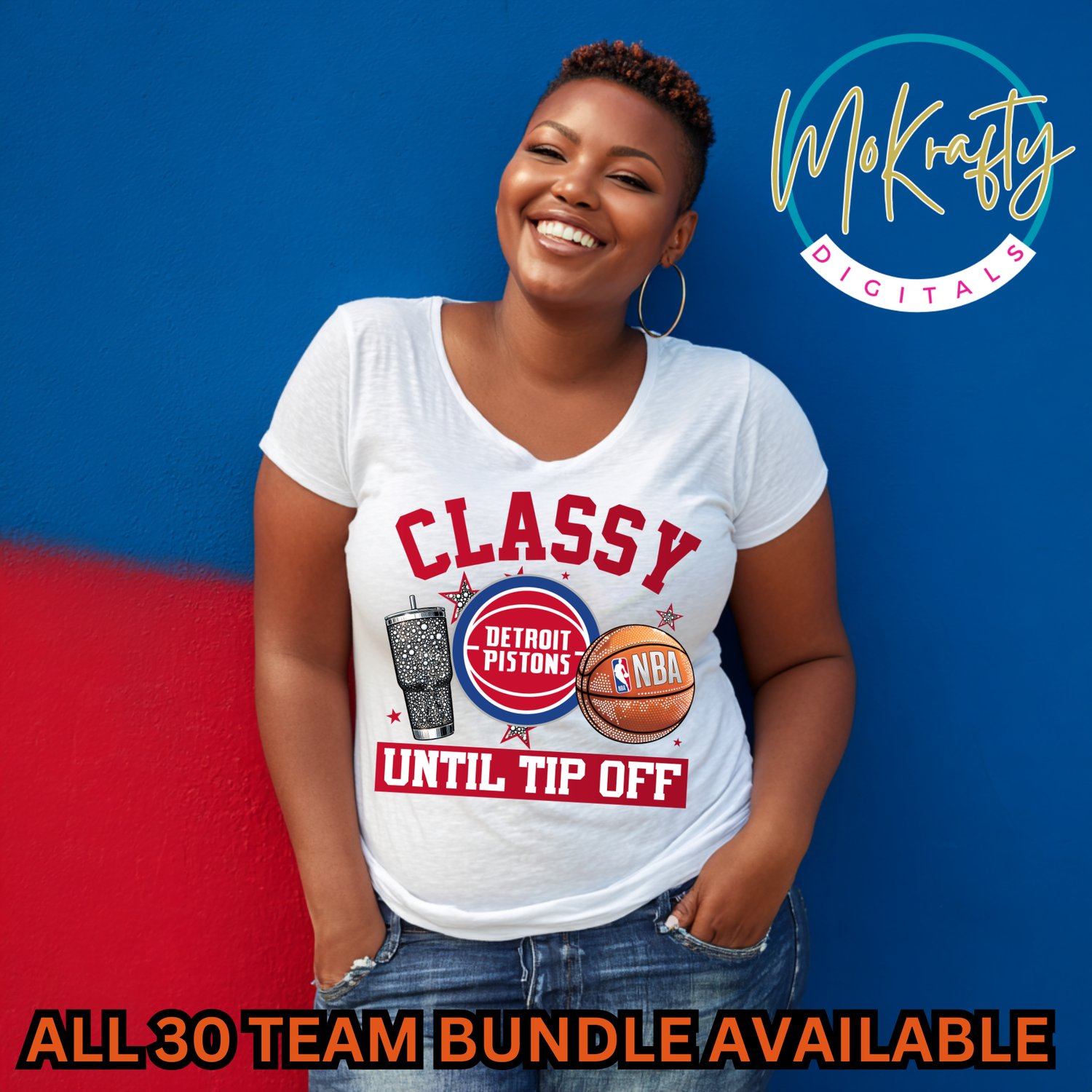 Bring some gameday glam to your shop or creations with this bold “Classy Until Tip Off” basketball fan design! Perfect for custom shirts, tumblers, hoodies, bags, and more — especially for basketball lovers who keep it cute until the whistle blows.