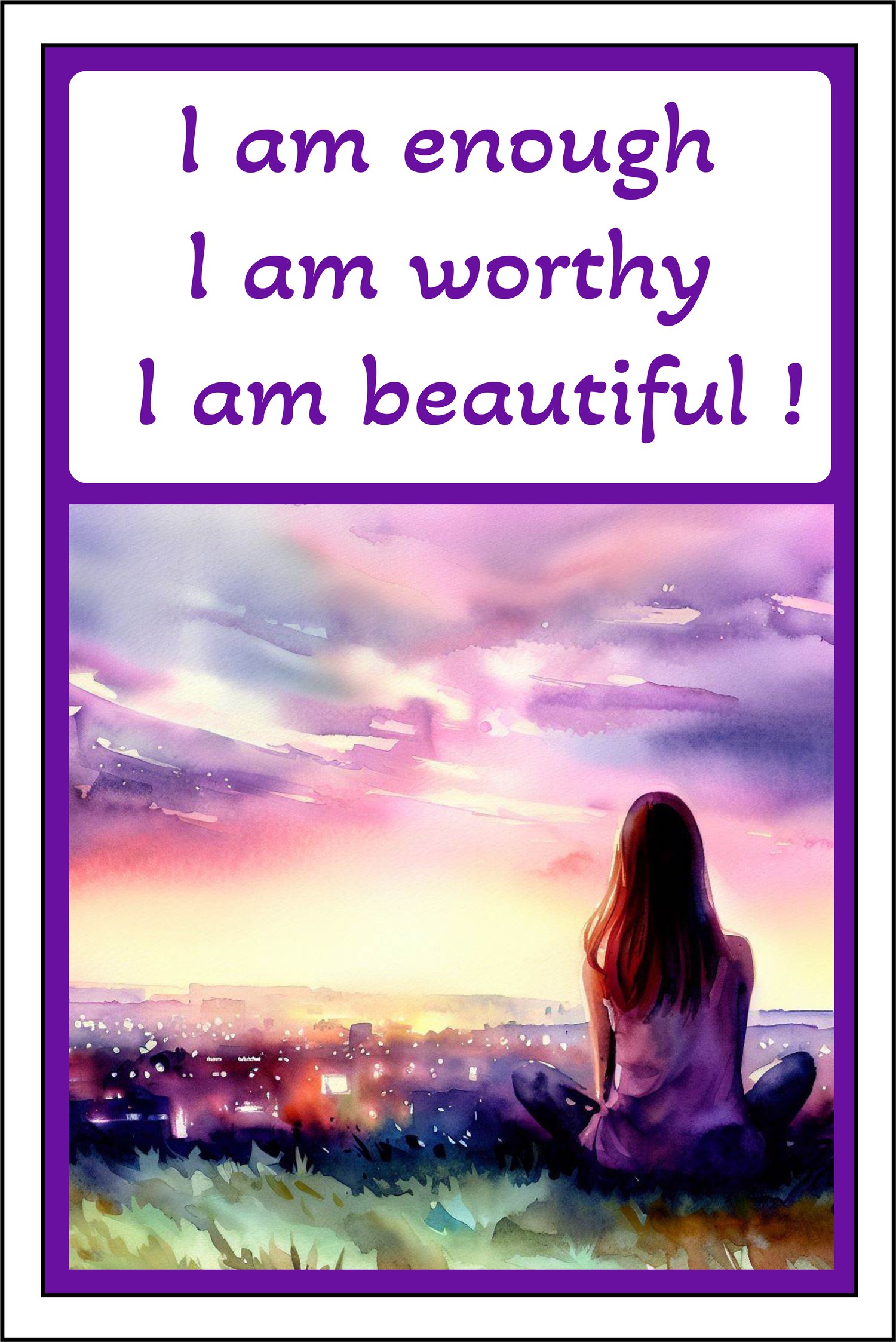 I am Worthy, Women's Inspirational Art, JPG & PDF Formats, Bonus Sticker Pack