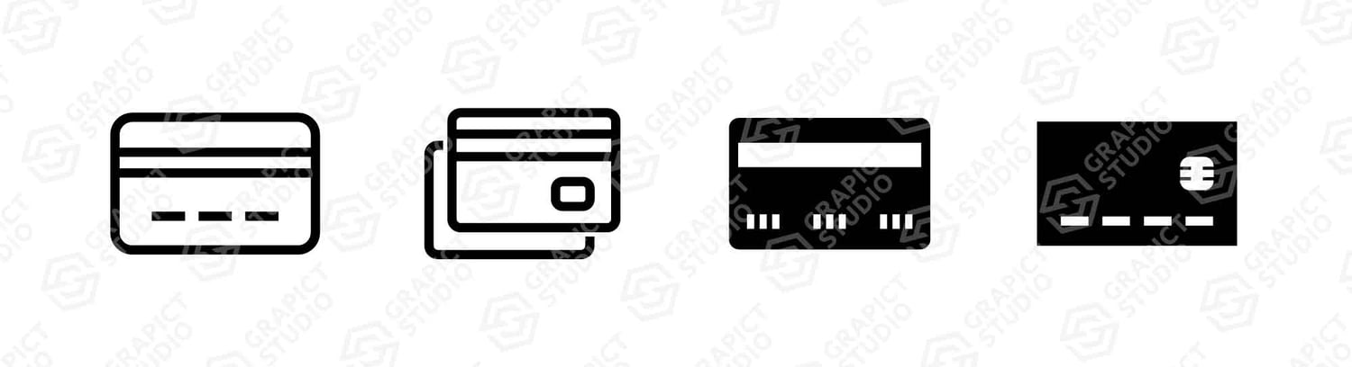 Card icon design element, clipart icon illustration related to credit card or debit card. Set of card icon outlined style, editable stroke and flat glyph style. Vector clipart image, graphic design element.