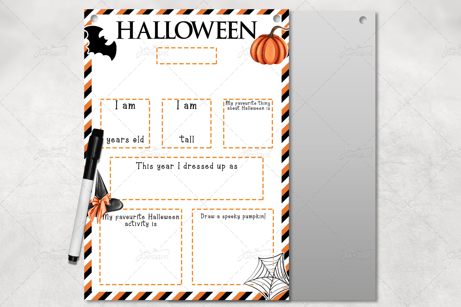 A fun way to celebrate Halloween! Kids can fill this in each year to see how they change over the years. These will also make for great photo props. I created this with A4 aluminum signs in mind but you can use it on any product you'd like.