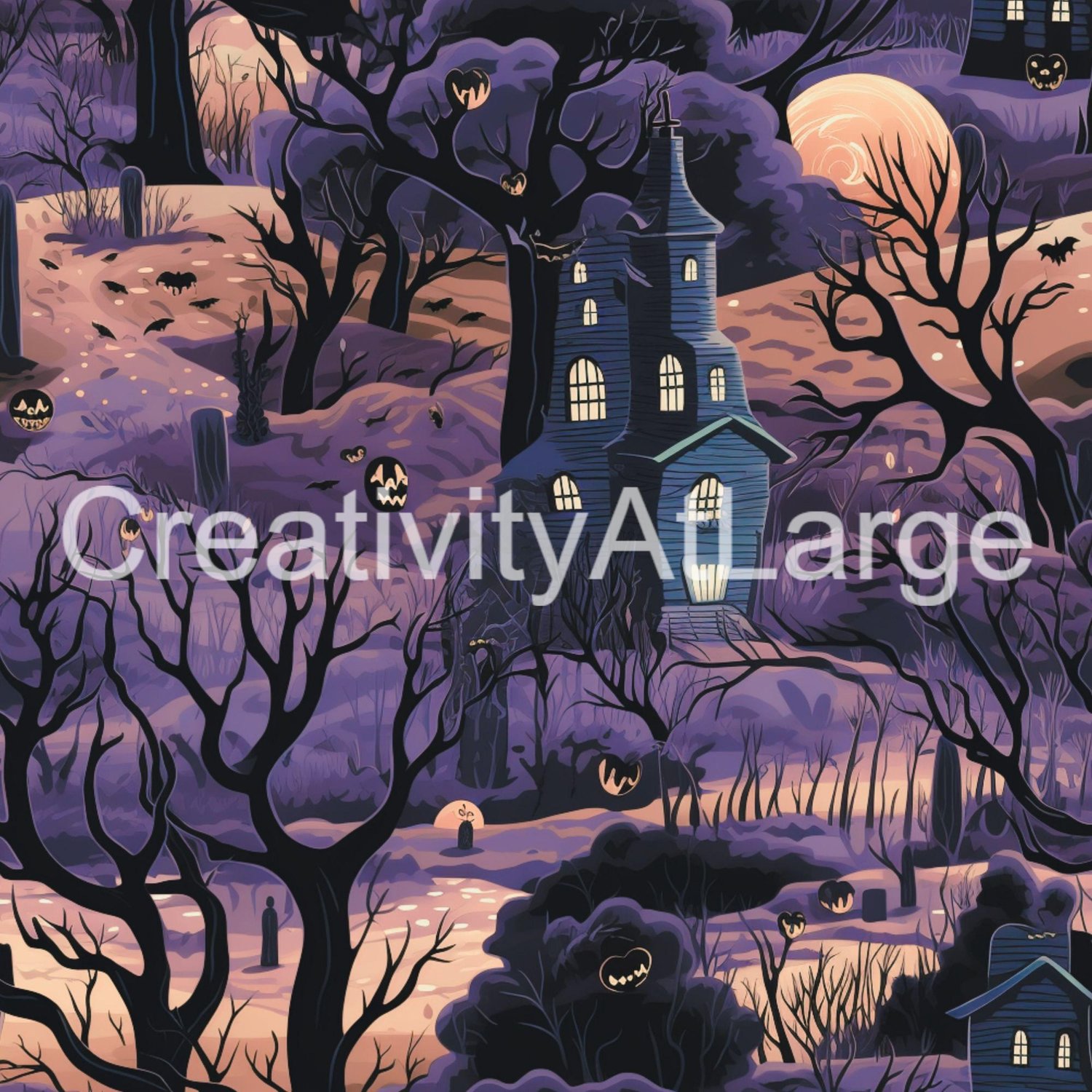 4 Halloween Haunted Graveyard Images - Great Background or Seamless Pattern