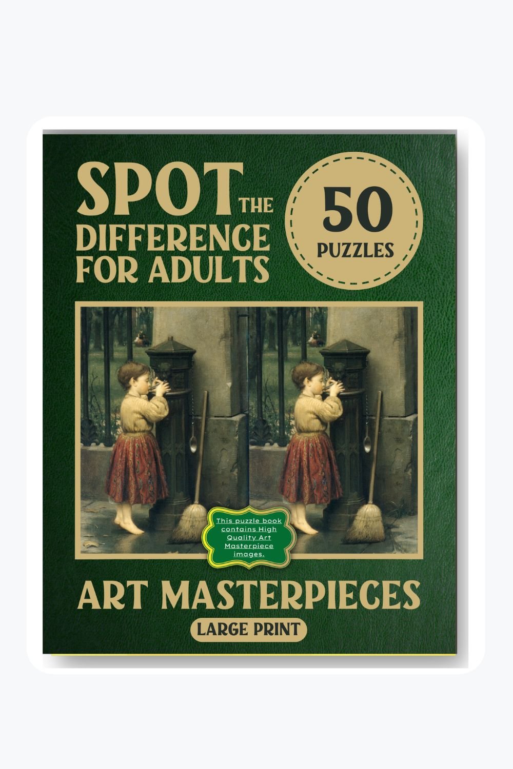 A premium spot-the-difference puzzle book for adults featuring premium art-inspired visual challenges. Designed for serious puzzle lovers who enjoy relaxing observation games with a more elevated, thoughtful style.