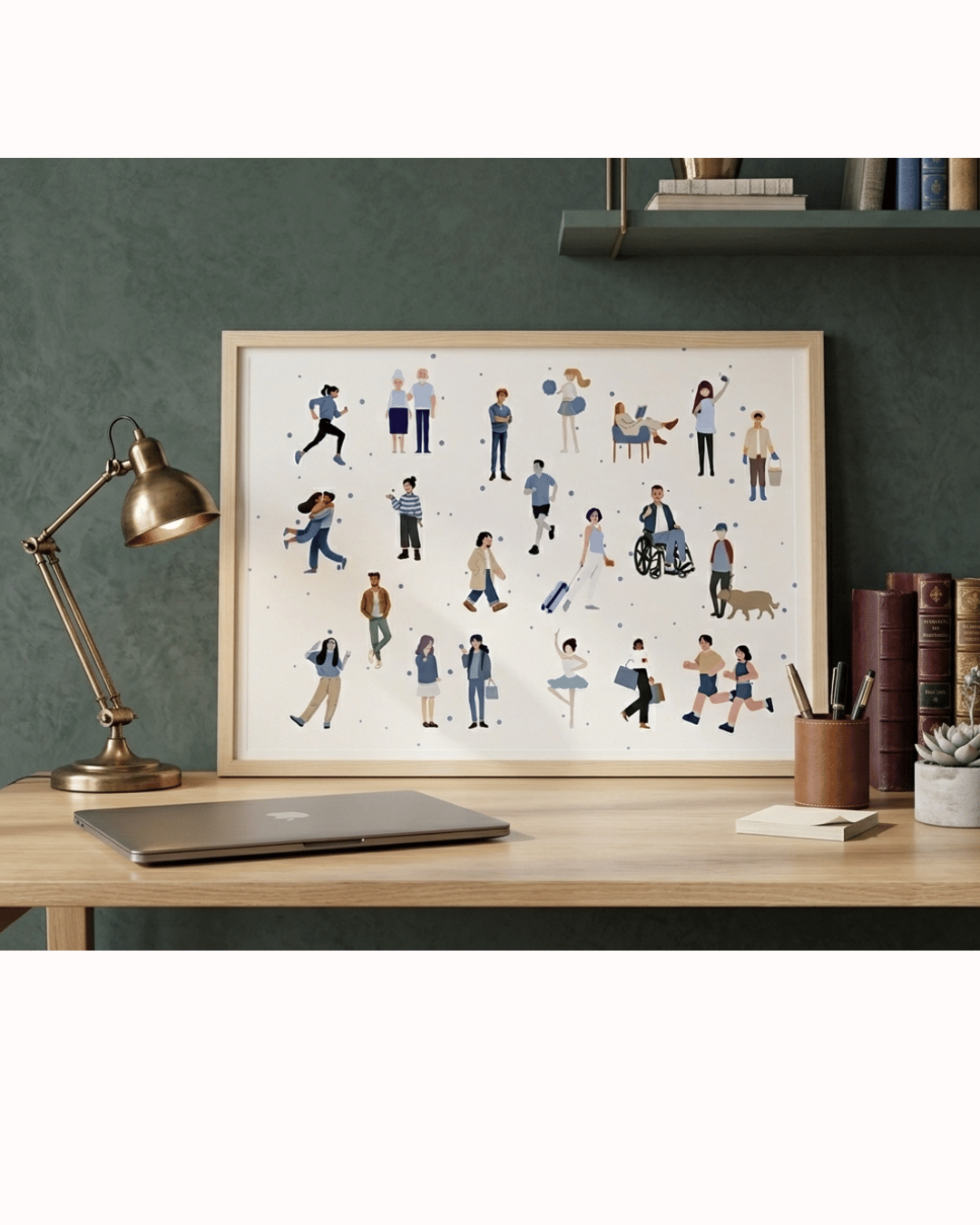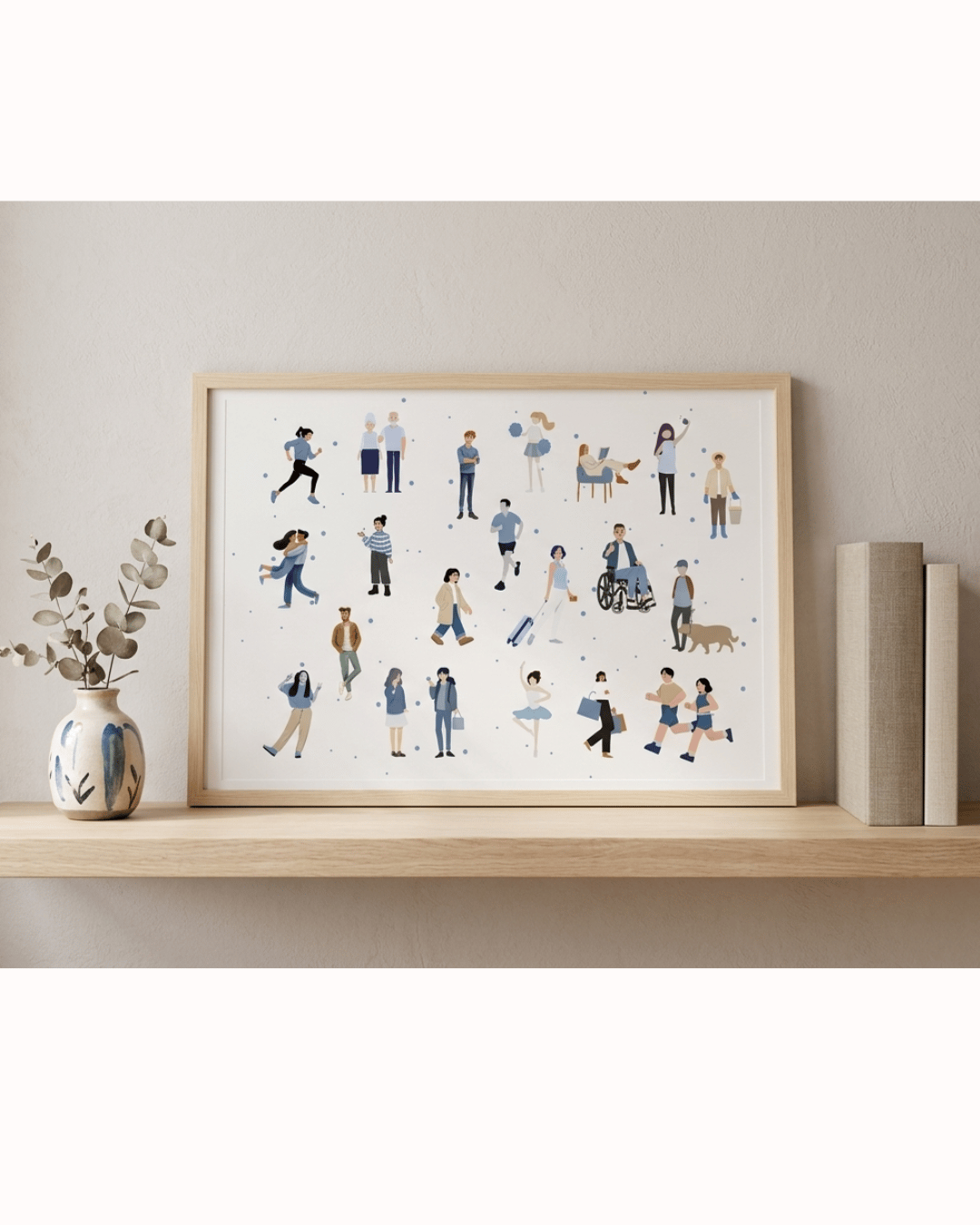 Add warmth, movement, and a human touch to your space with this beautifully illustrated Everyday Life Artwork.