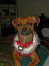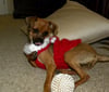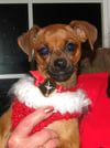 The Santa Sweater Crochet Pattern. Made with small dog breeds in mind.