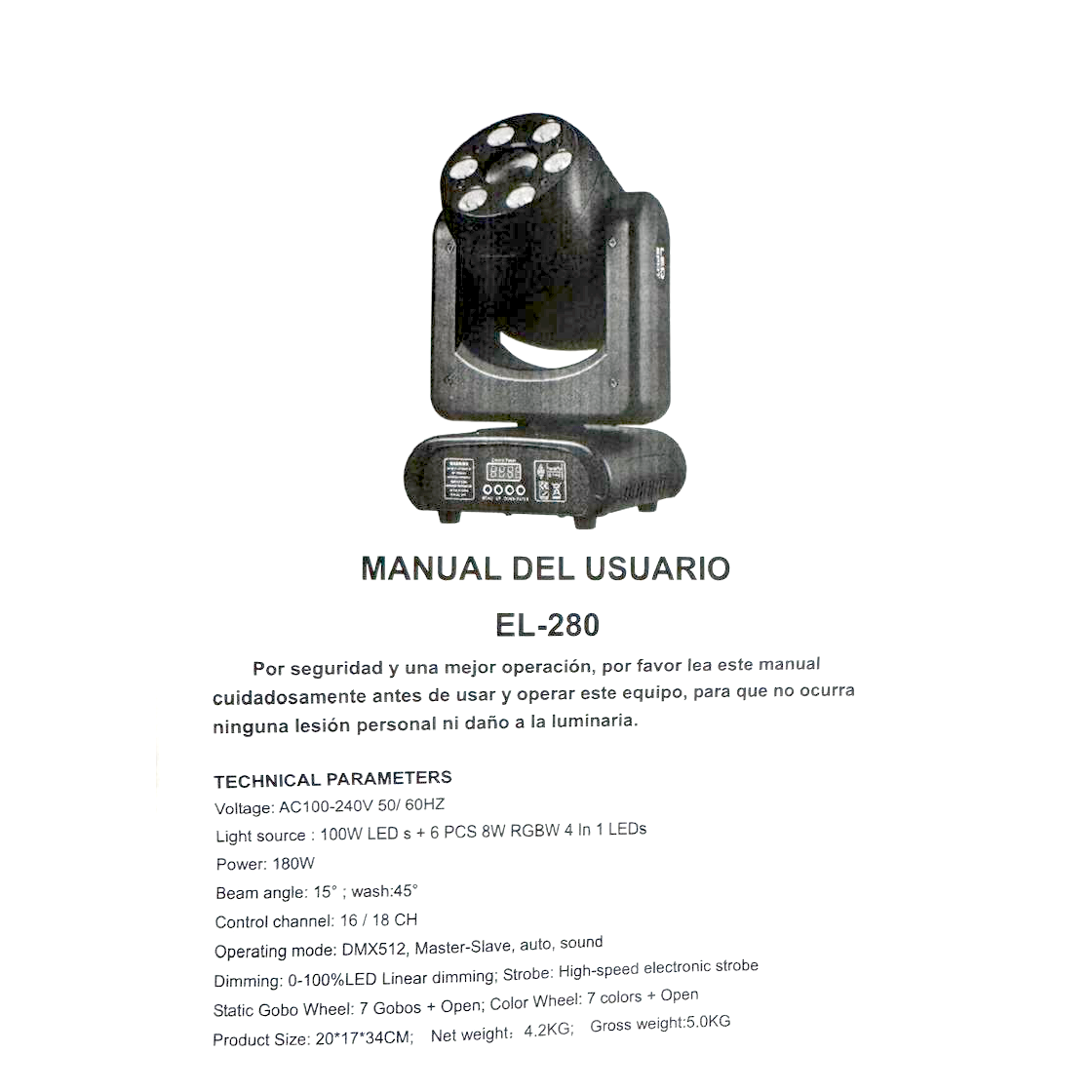 • Selección de 5 Gobos (propios del equipo) + Open + Shake + Rotación de la rueda de Gobos.