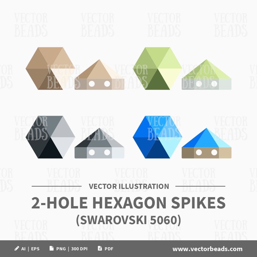 Vector Illustration of 2-hole Hexagon Spike Beads