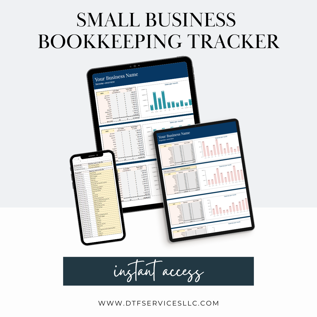 With our Small Business Bookkeeping Tracker, you'll have everything you need in one organized place!