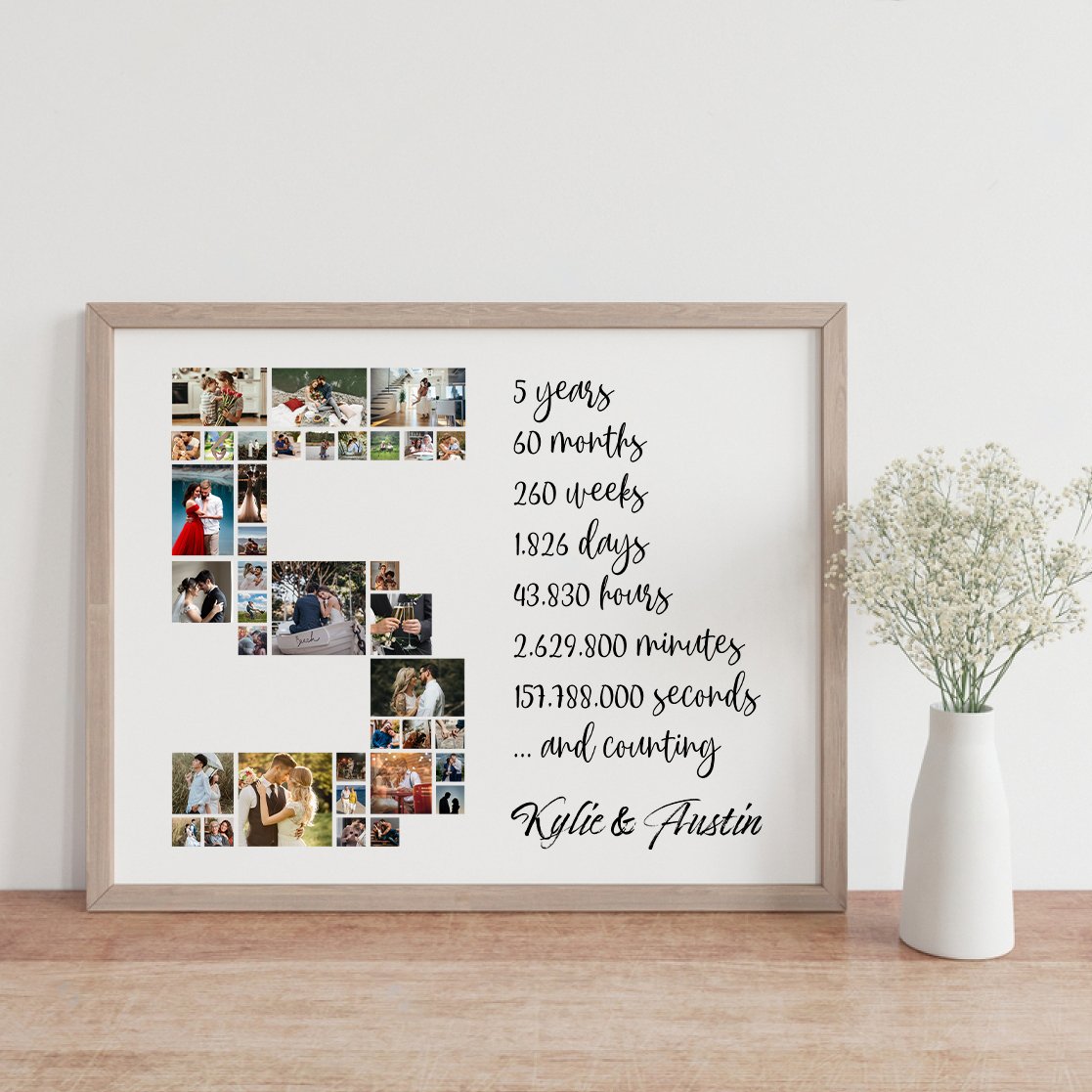 EDITABLE 37 photos, Custom 5th Anniversary Photo Collage Template, 5th Anniversary Gift for Boyfriend, 5th Birthday, Digital