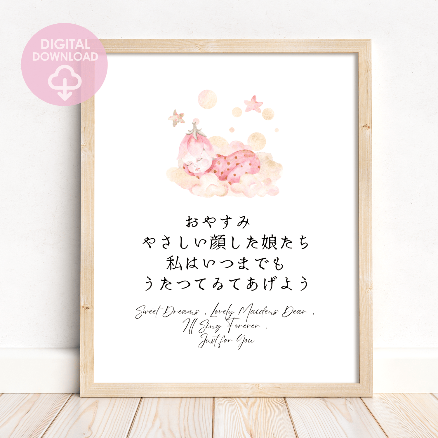 Printable Pink Baby Girl Wall Art, Japanese Nursery Poem Wall Decor