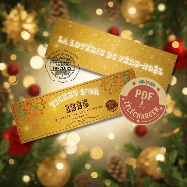 Offrez à votre enfant une dose de magie avec le Ticket d’Or du Père Noël. Chaque ticket est numéroté et décoré avec des motifs de Noël enchanteurs (houx, étoiles, boules dorées) et cache une surprise spéciale : une récompense choisie par le parent, comme un Yes Day, une sortie en famille, ou une activité magique à la maison.