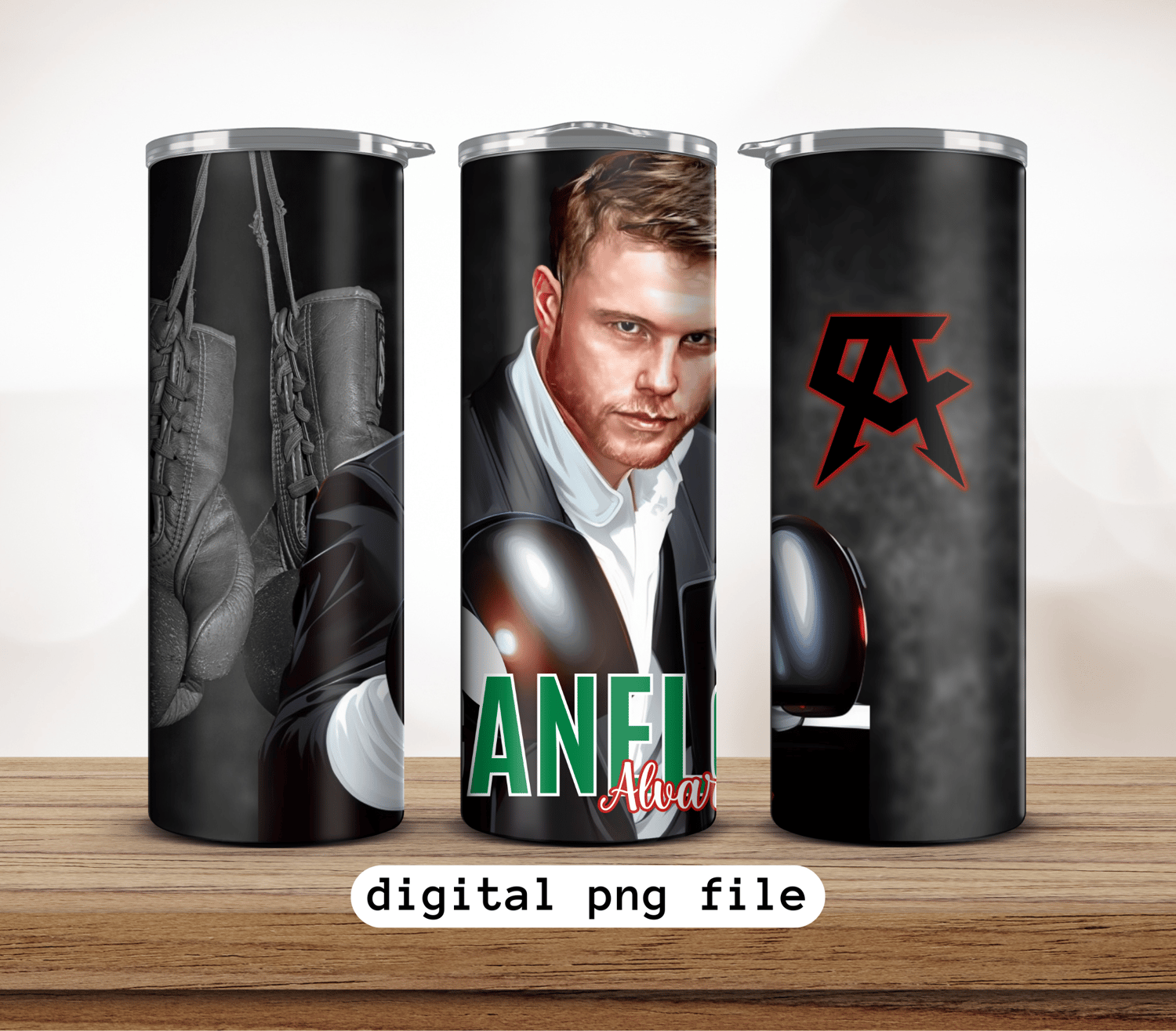 Bring the heat of the ring to your tumbler game with this bold Canelo Álvarez-inspired digital design! 🥊🔥 Featuring the champ himself, classic boxing gloves, and his iconic logo—this design is perfect for boxing fans, sports lovers, and anyone reppin’ Mexican pride 🇲🇽.