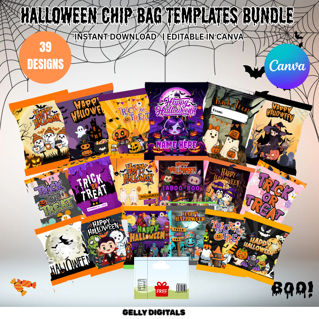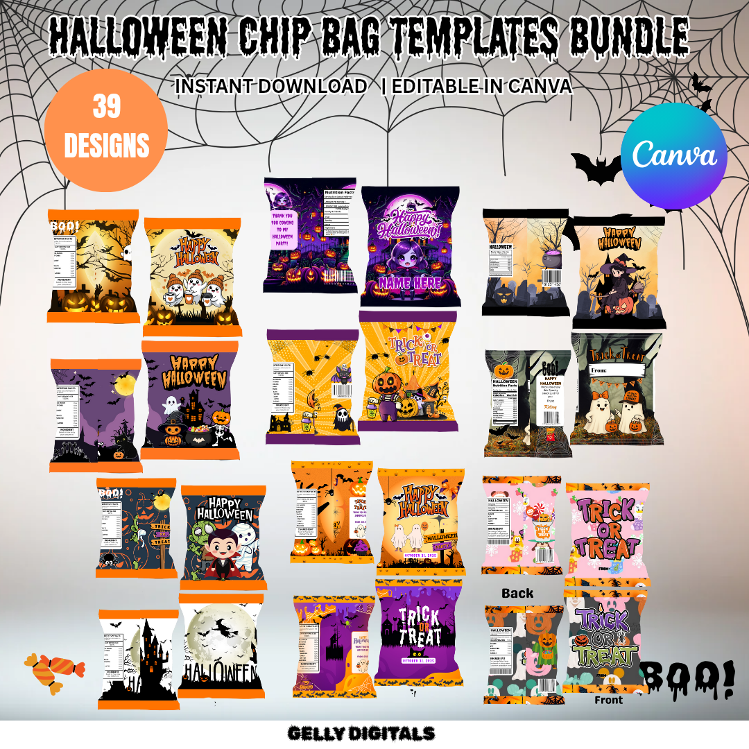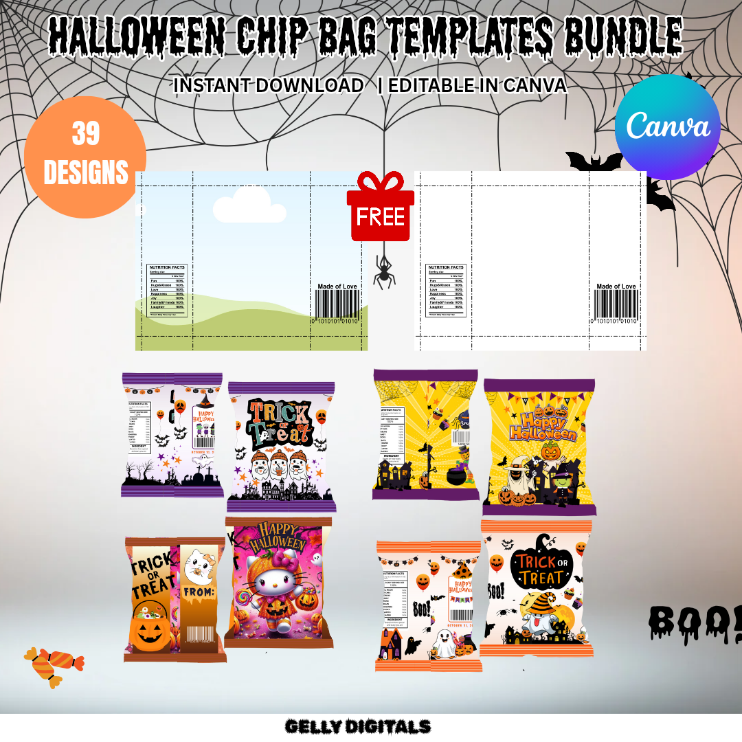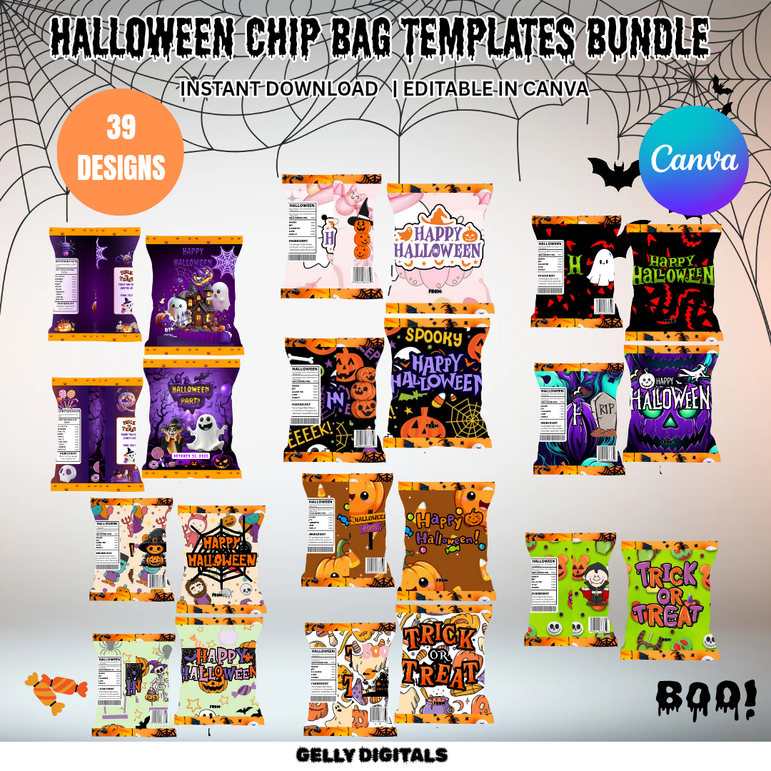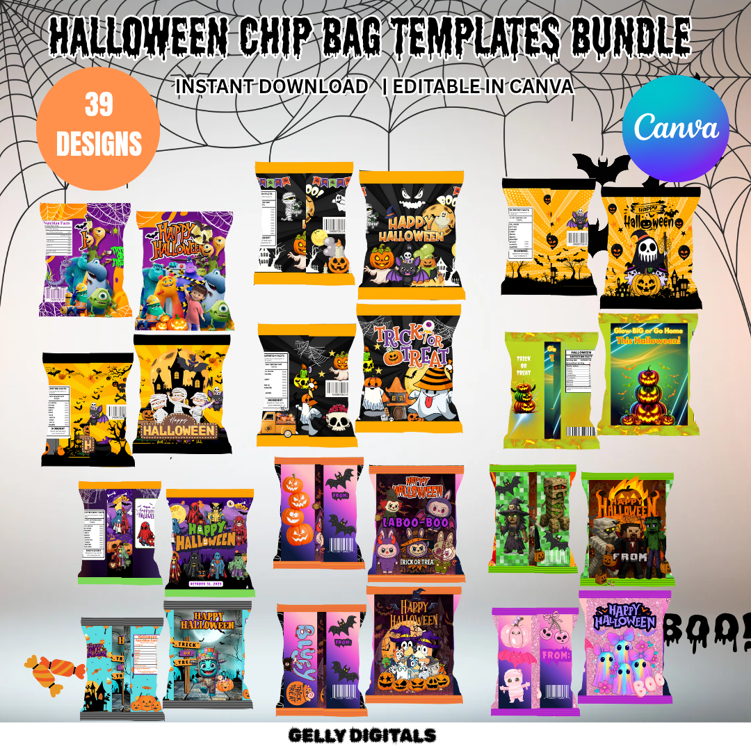 ✨Halloween Chip Bag Templates Bundle (39 Designs) - Editable in Canva ✨