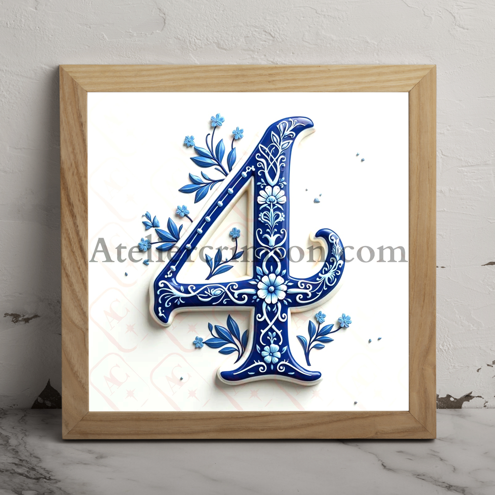 Number 4 delftware blue tiles Download Now this high quality AI-generated image, perfect for adding a touch of tranquility and creativity to any space.