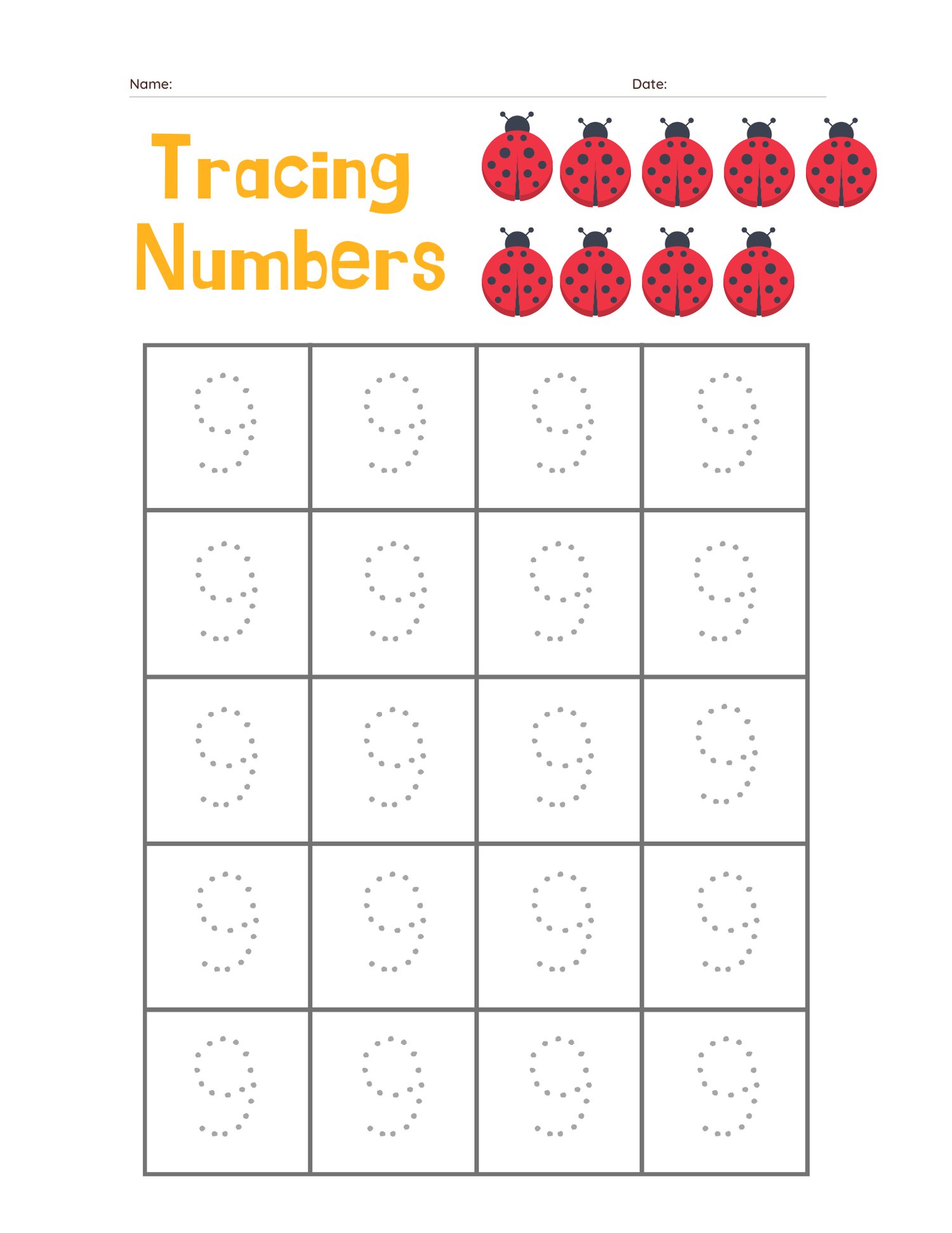 Tracing Numbers 0 to 9