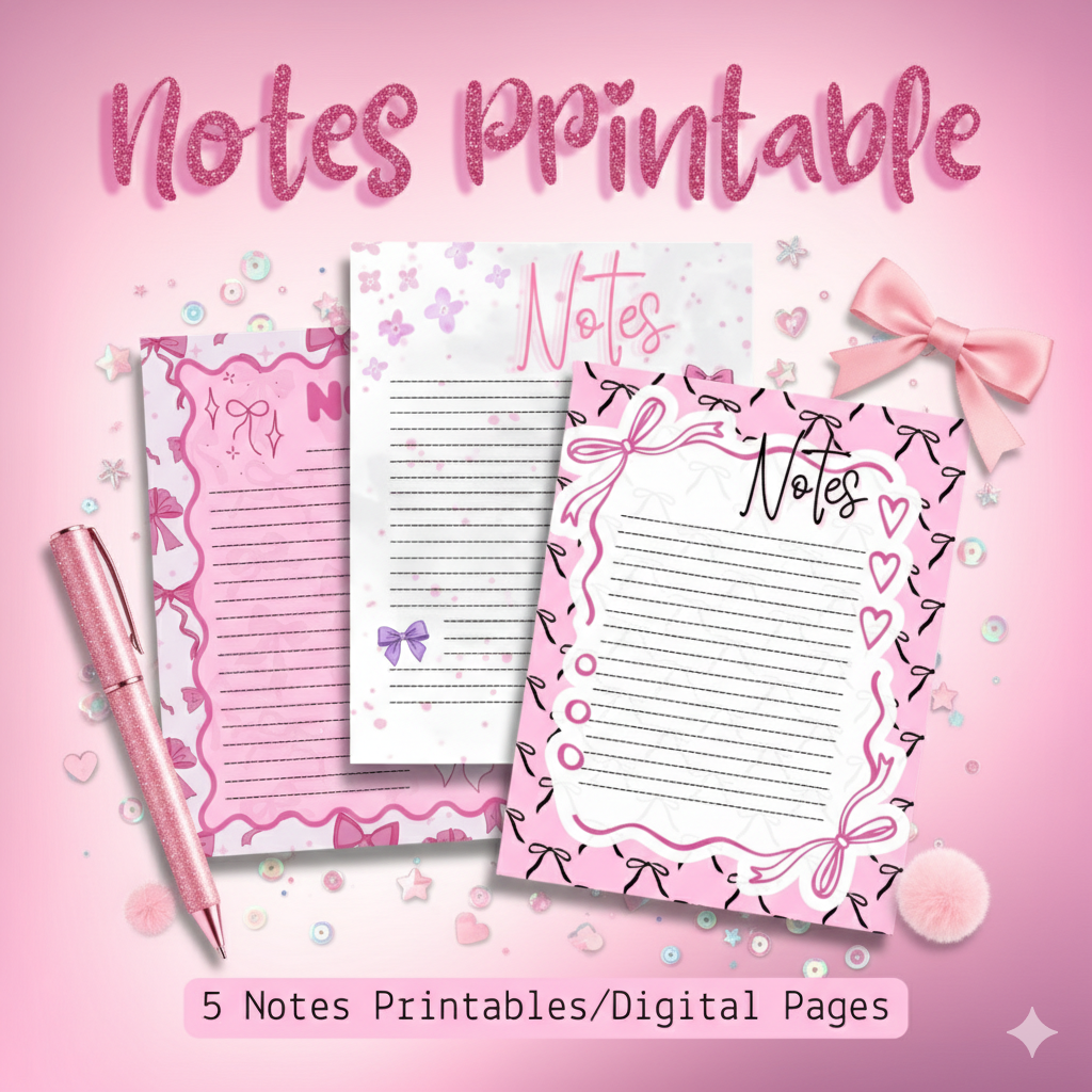 Turn your random thoughts into main-character moments with this pink coquette notes bundle. Perfect for brain dumps, manifestation scripts, or your 3 a.m. “wait… write that down” ideas — in five dreamy designs you can print or use digitally. It’s cute, it’s a little edgy, and it’s about to make your desk (and your mind) feel way more put together. 💕