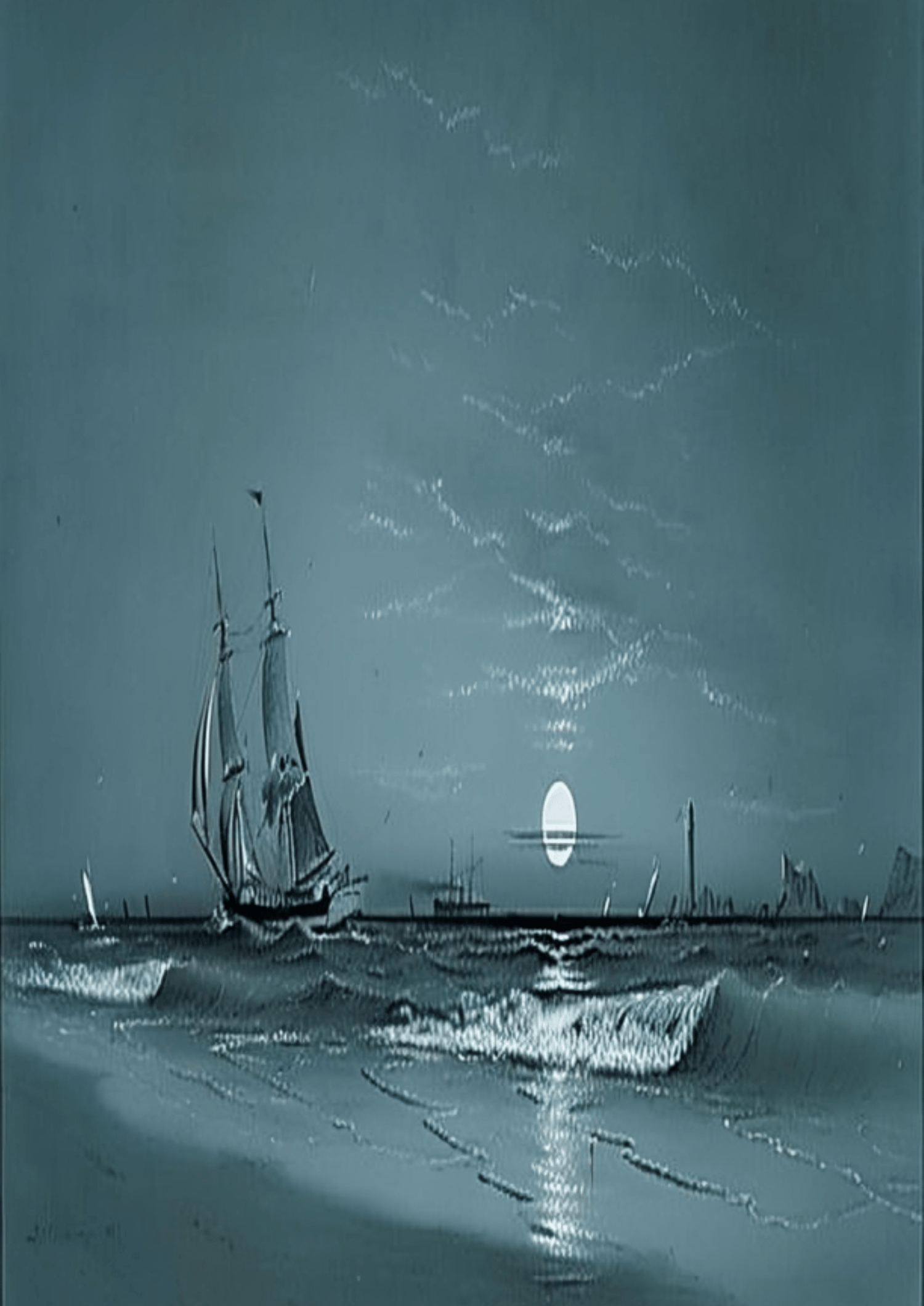 Vintage Boat Sailing, Sailboat, Ancient Boat, Best Art, Nostalgic Boat Sailing, Rustic Maritime, Painting.