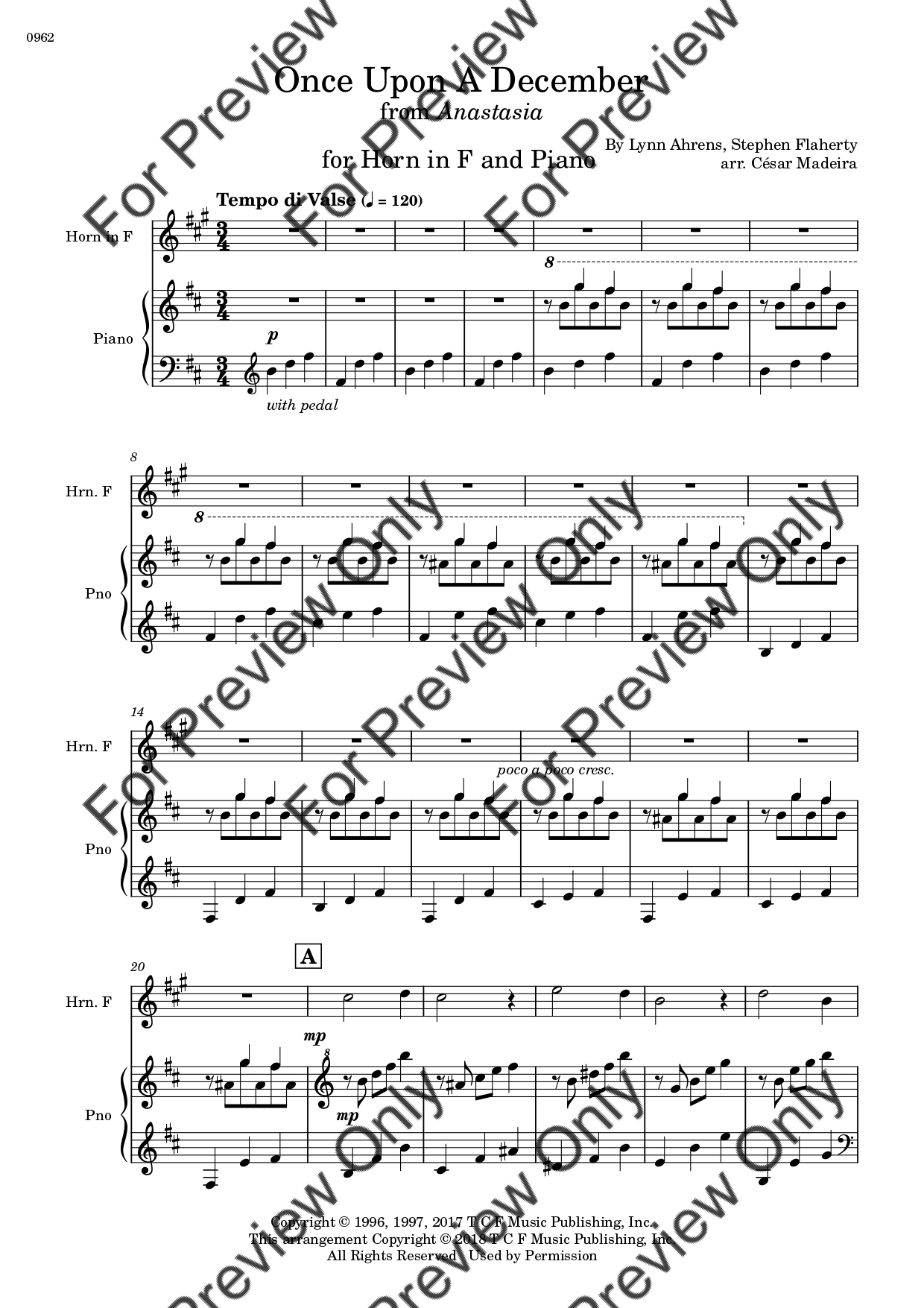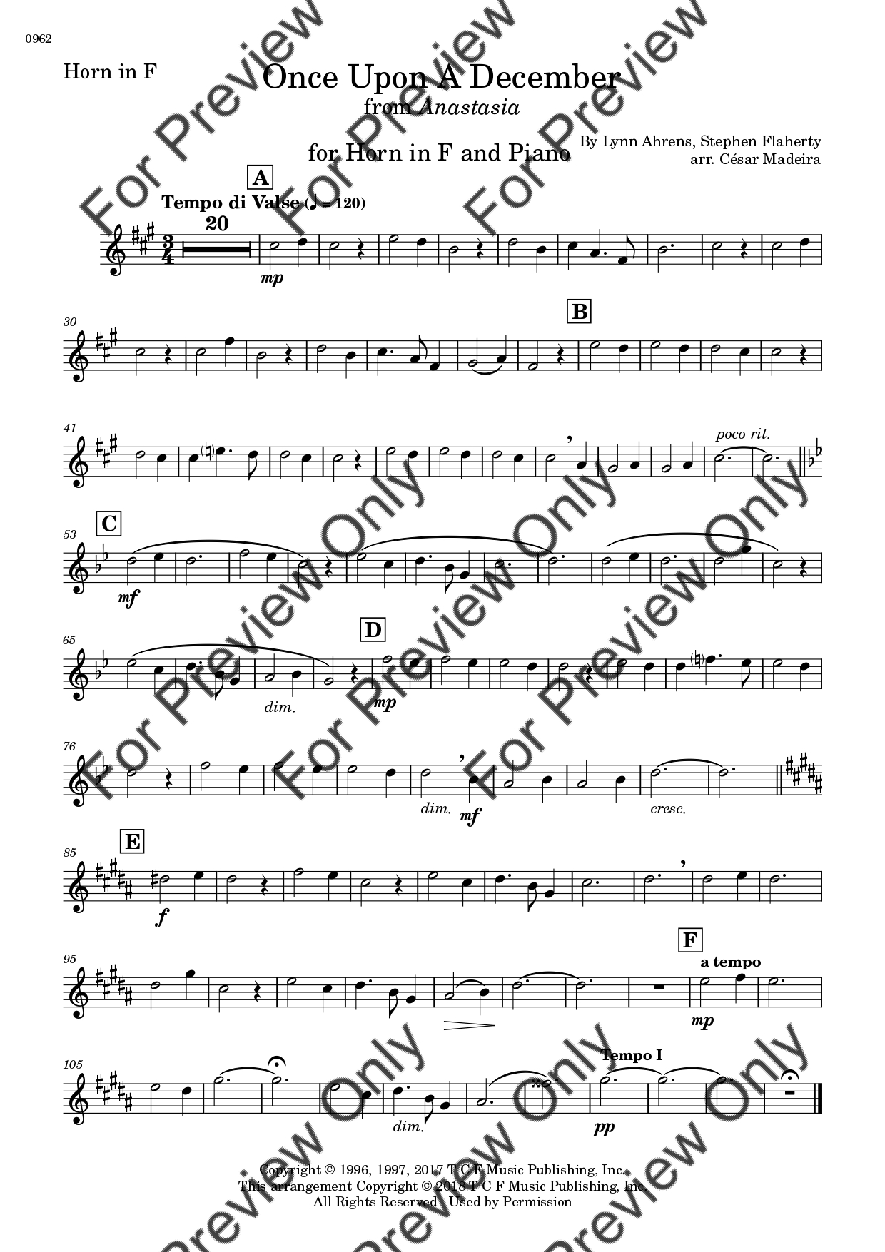Once Upon A December from Anastasia. Arrangement for French Horn and Piano. With Full Score and Individual Parts. Have fun!