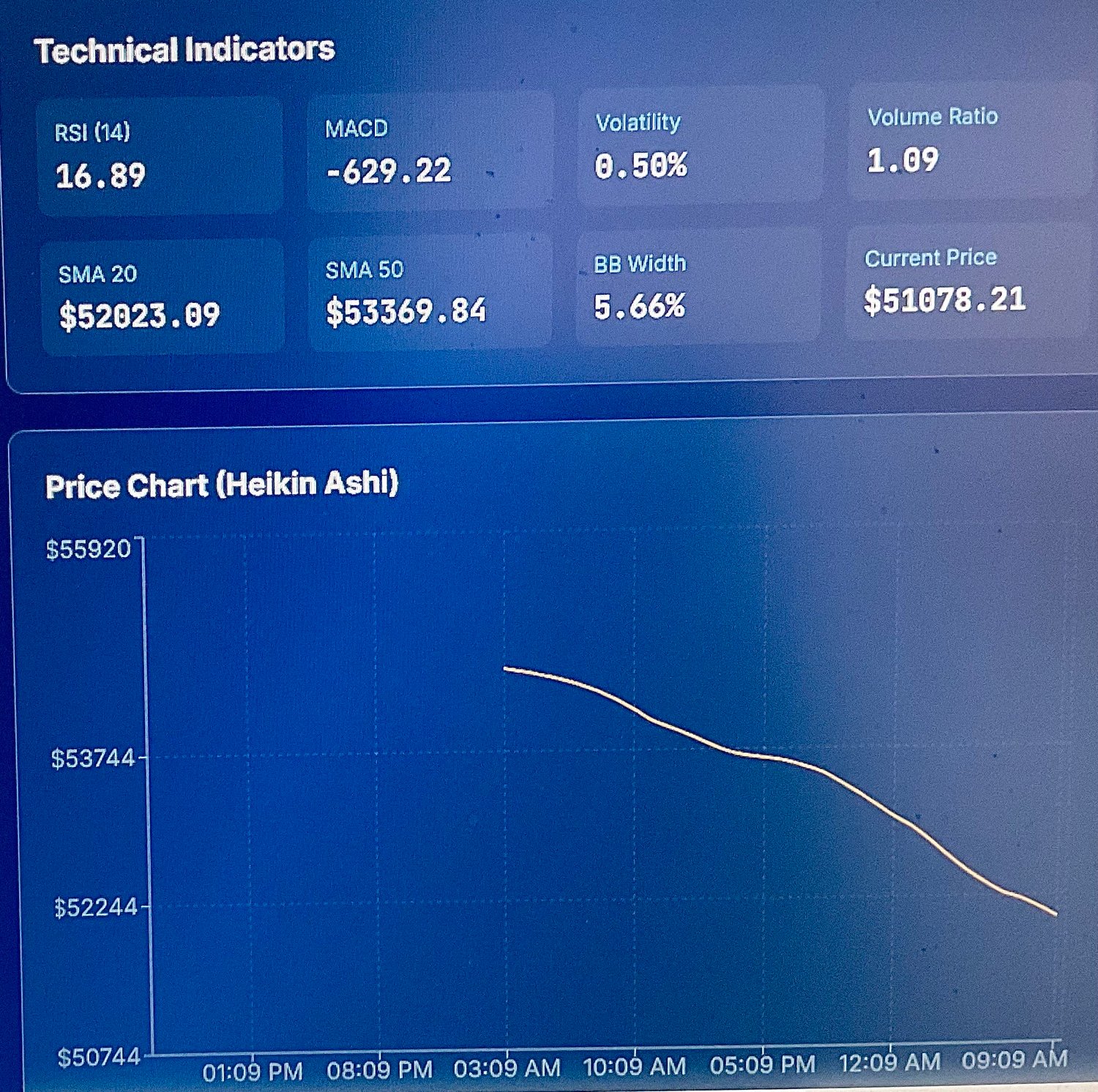 • Real-time technical indicators (RSI, MACD, Volume, Bollinger Bands)