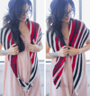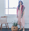 Sometimes, the most unexpected places spark creative ideas. While staying in Santa Fe while teaching at a knitting retreat earlier this year, I found myself captivated by the red, white, and black stripes on a bench cover in the hotel lobby. Staring at the heathered black and white flowing through solid colors, I thought, “I could do that in intarsia.” This moment became the foundation of the High Desert Shawlette – a piece that brings the warmth and beauty of the Southwest into knit form. With its asymmetrical shape and vibrant color blocks, this shawlette captures the bold yet balanced landscapes of Santa Fe.