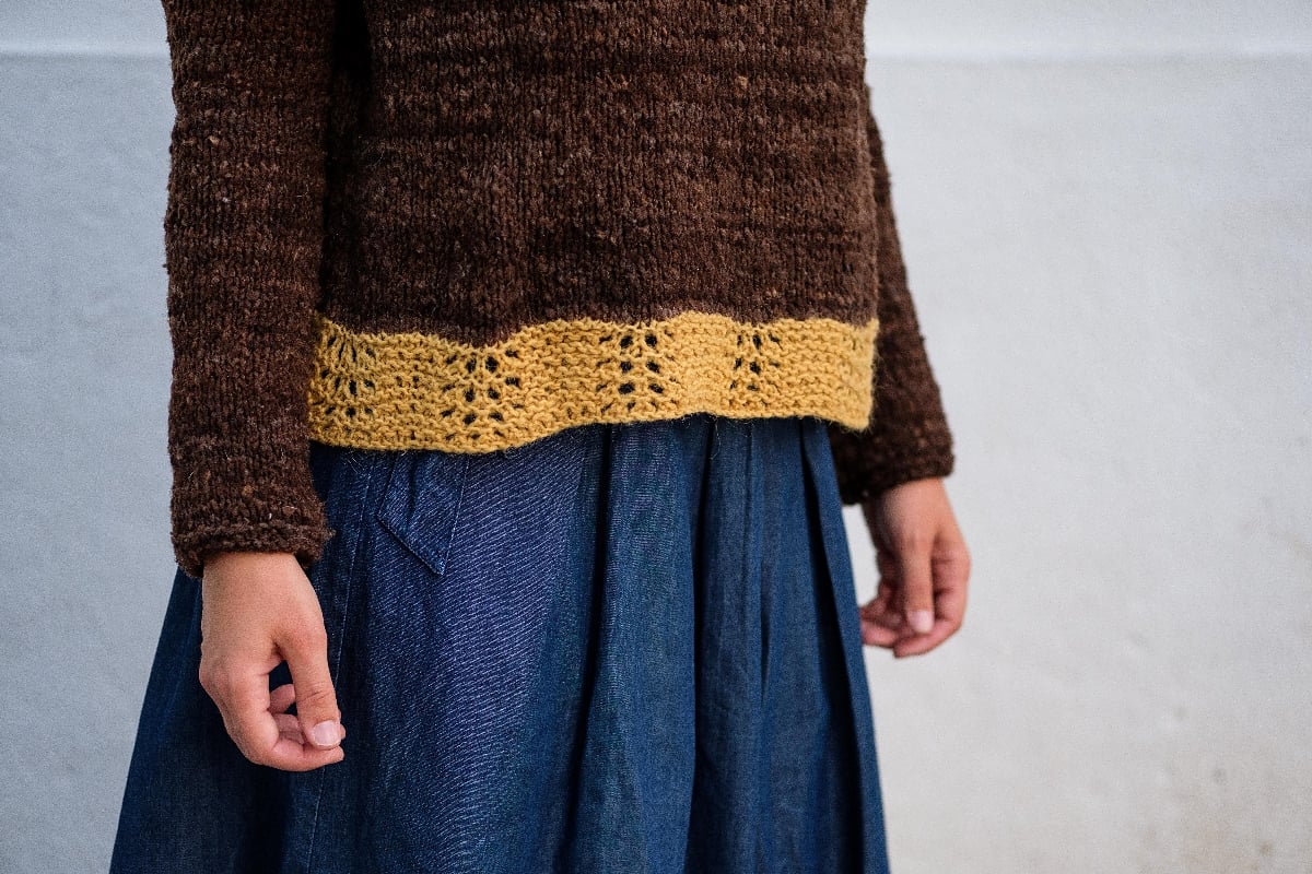 The name is inspired by this rustic look and soft touch of the yarn. “Terra” in Portuguese is often used to refer to our home, our village, our family, and this sweater is a perfect pair to that “homey” feeling.