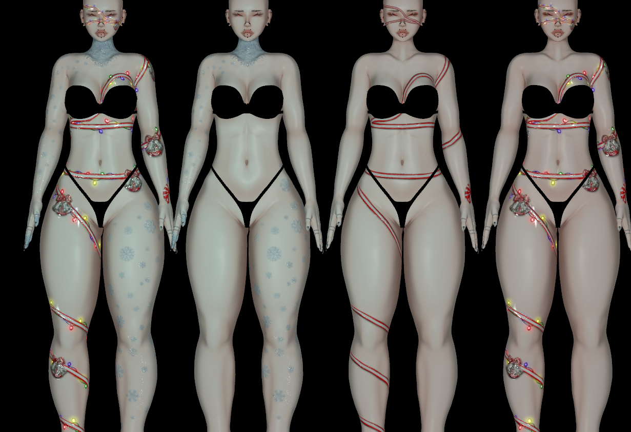 ♡ INCLUDED IN PACKAGE texture maps: (body) with layered tattoos , Emissions map, Normal maps, unity package with custom settings.