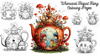 Fairies performing a variety of actions, such as perching on teapots, pouring tea, and orchestrating magical activities, are depicted in these captivating designs, which reveal intricately detailed illustrations set amidst delightful teapot-centric elements. Take a trip to magical tea parties, wander through mysterious gardens teeming with butterflies and flowers, or take a look at fascinating teapot houses in the collection of these illustrations.