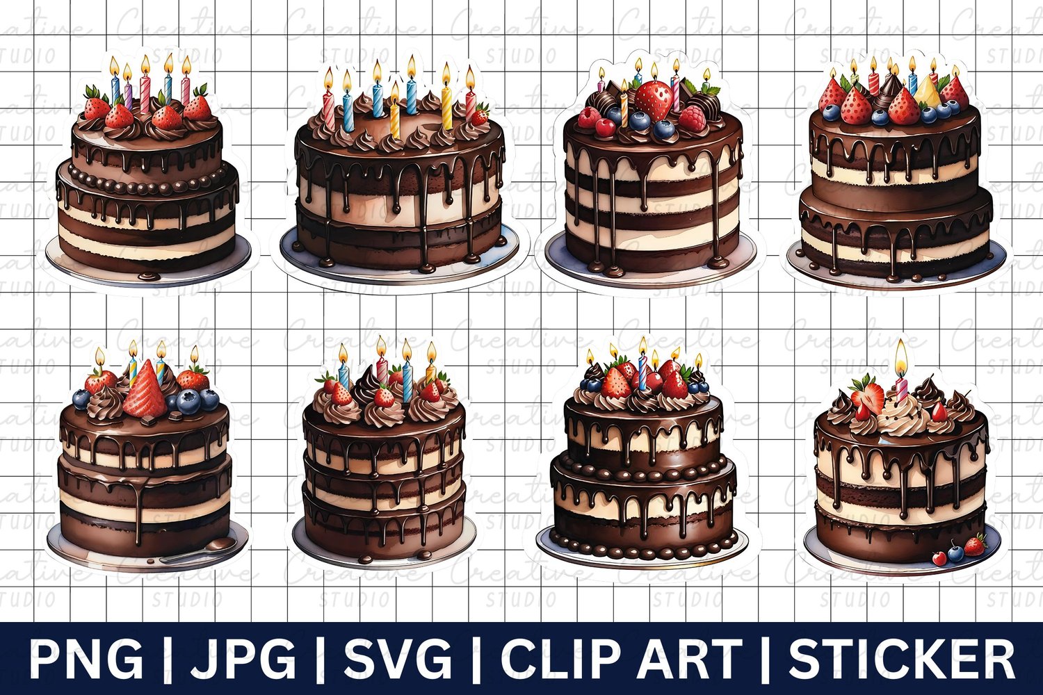 Chocolate Birthday Cake Design Sticker Clipart Sublimation