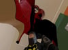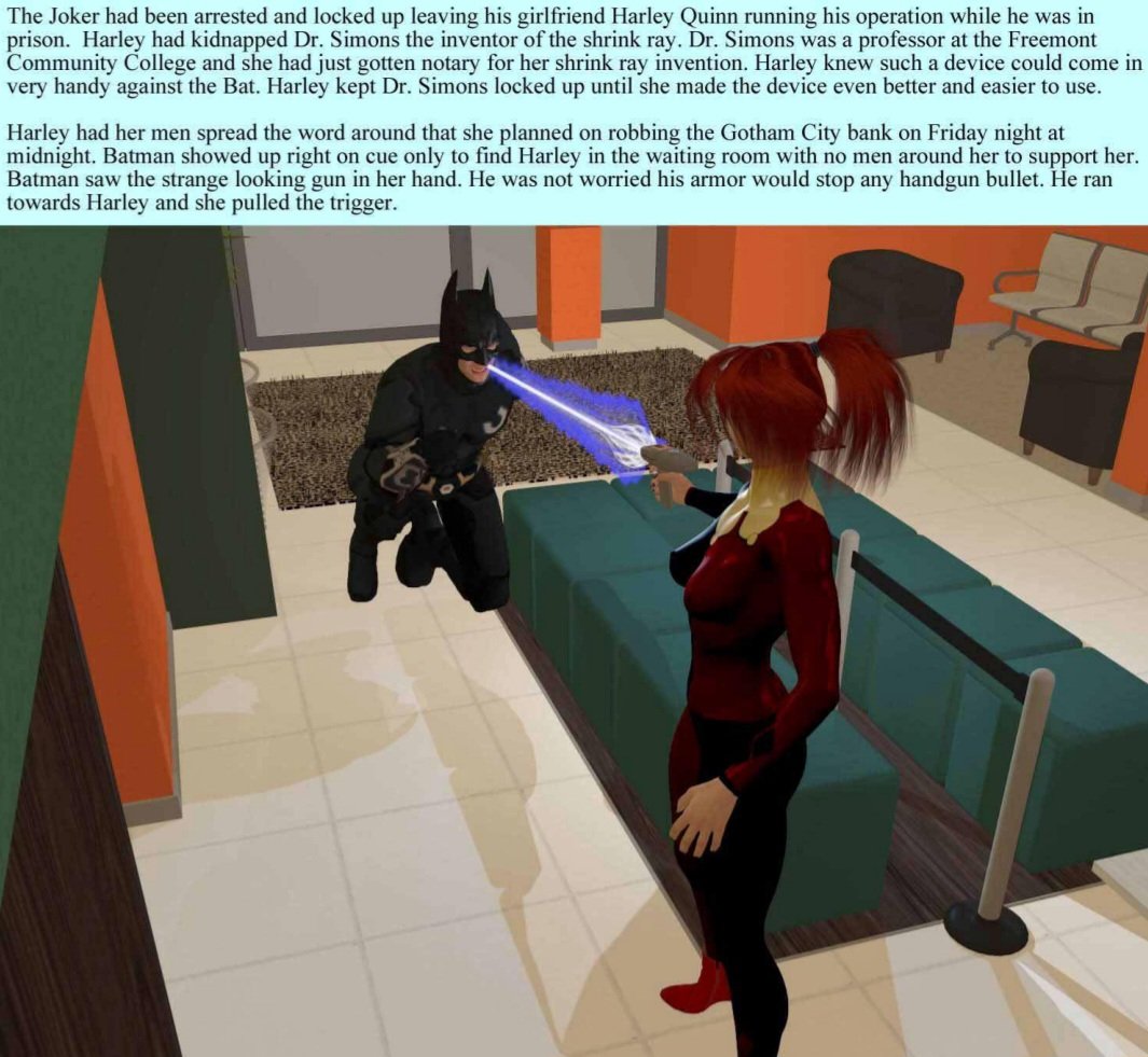 Batman was reduced to the size of an insect by Harley Quinn. It was the Joker's wish.