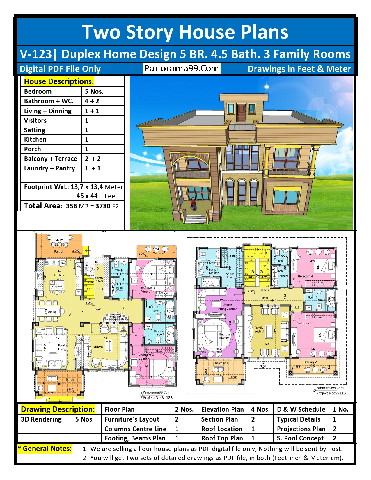 2- You will get Two Sets of detailed drawings as digital PDF files, in both units Feet and Meter.