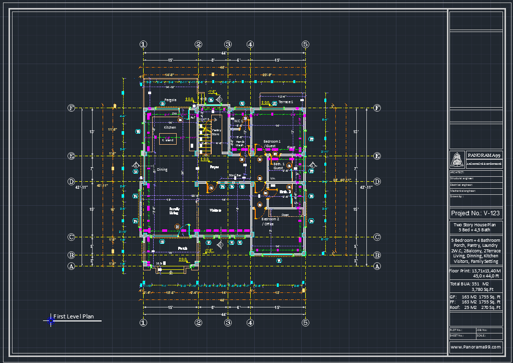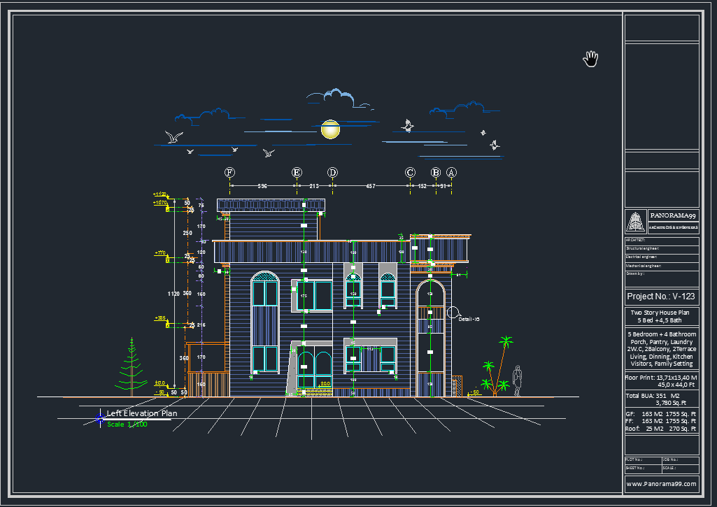 V-123| Two-Story Modern House Plans – 5 Bedroom Family Home