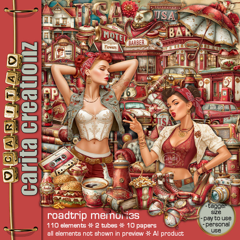 This kit comes with some rustic, worn and grungy elements and is full of charming USA retro.