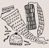 Coloring Book includes Pigment shawl, Misanga hat, Scribbled Lines scarf and headband, and the whole Color by Number set, with the customizable pattern plus all seven specific sample item patterns. (See the patterns here.)