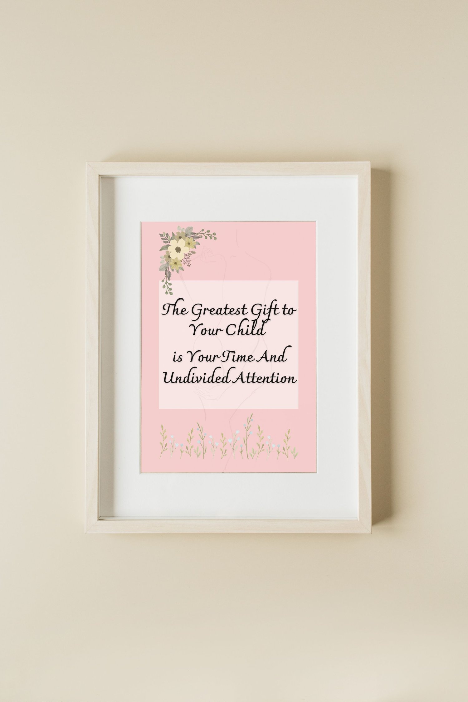 Elevate your living space with our enchanting printable art, featuring a heartwarming quote: "The greatest gift to your child is your time and undivided attention." This stunning artwork serves as a daily reminder of the profound impact of genuine, quality time spent with your children—a gift that holds immeasurable value in their lives.
